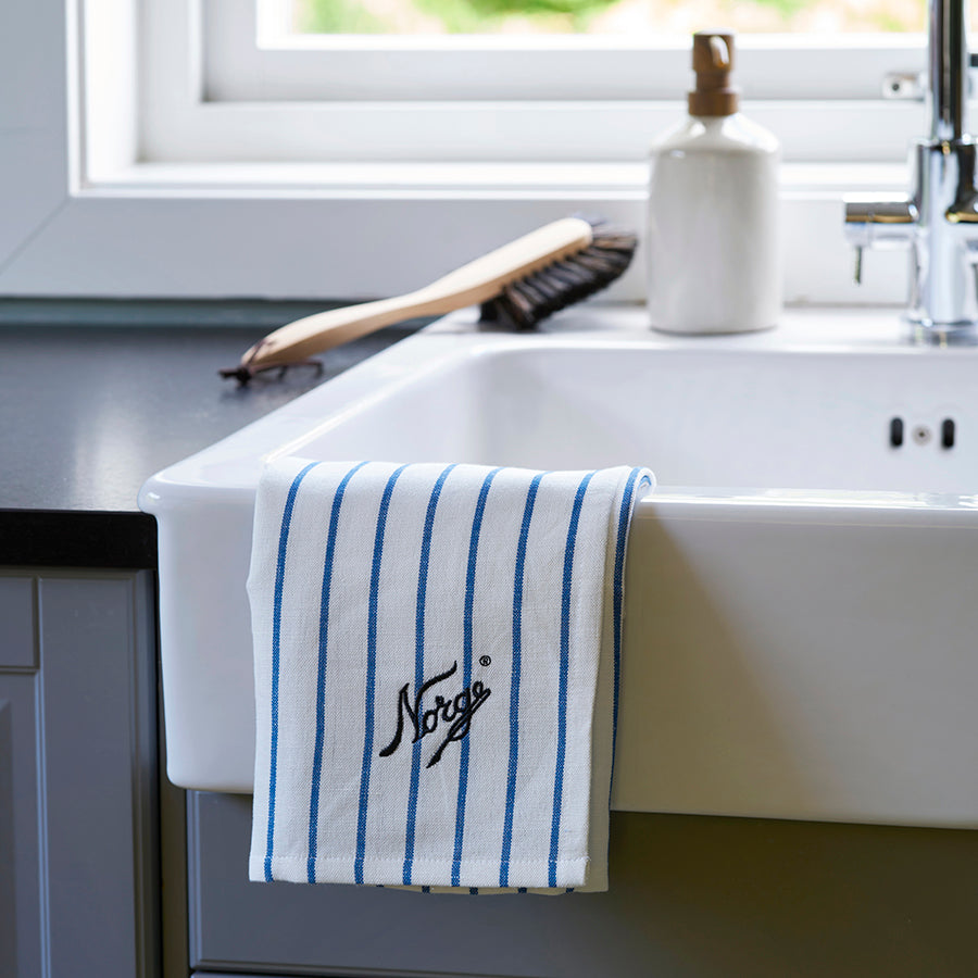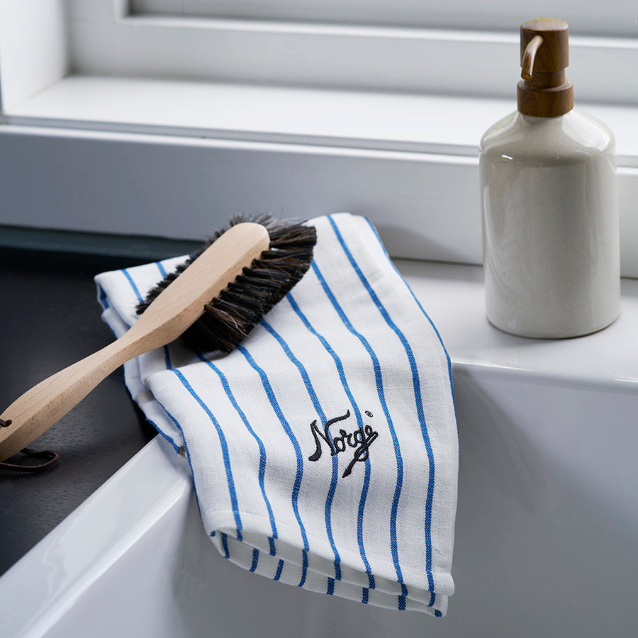 Kjøkkenhåndklær fra Norgesglasset i en myk lin- og bomullsblanding. Håndklærne har god absorberingsevne og gjør seg fint på kjøkkenet.
