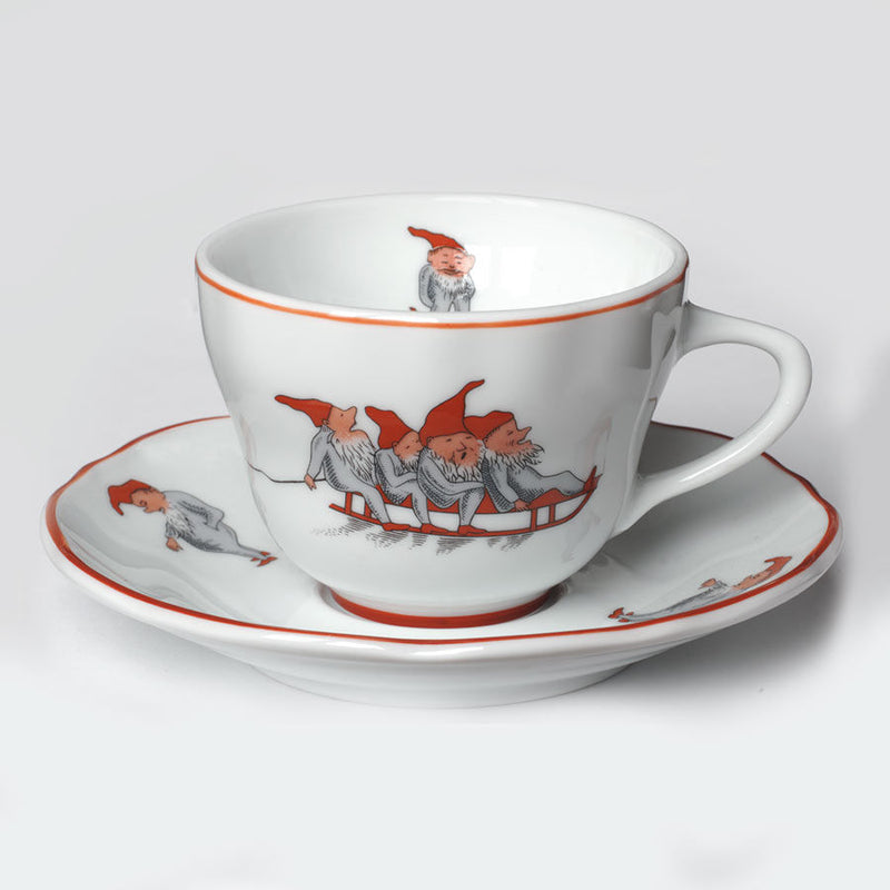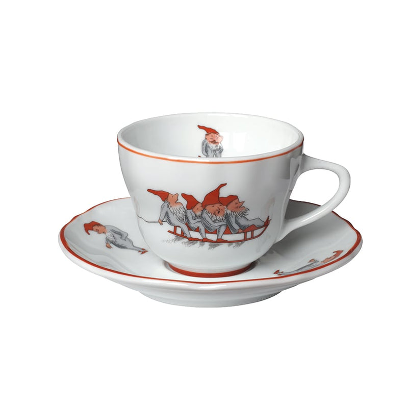 Koppen på 15 cl er en nett og lekker liten kopp, perfekt for en espresso eller en liten kaffetår. Med en høyde på 6,5 cm og tilhørende skål som måler 12,9 cm, er dette et ideelt valg for de som setter pris på det lille ekstra. Den delikate utformingen og nisseillustrasjonene gir en koselig stemning, enten det er til julebrunsjen, en kaffekopp i godstolen eller som en del av selskapet. Koppen kommer også i en større versjon, 22 cl, som egner seg godt til en større kopp kaffe eller en liten kopp te.