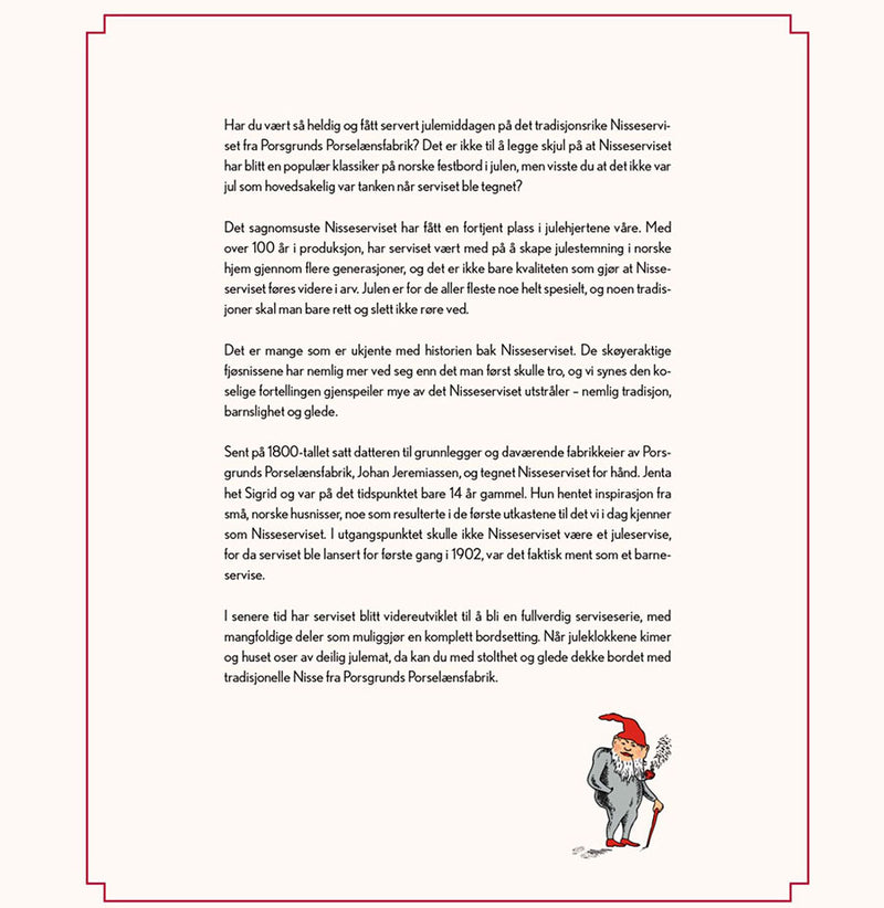 Hvert år dukker dette nisseserviset opp i tusenvis av hjem, hvor det skaper en varm og nostalgisk stemning. Med røtter i norsk kulturarv og arv som går fra generasjon til generasjon, er dette juleserviset perfekt for å bringe frem julens magi og hygge rundt bordet.