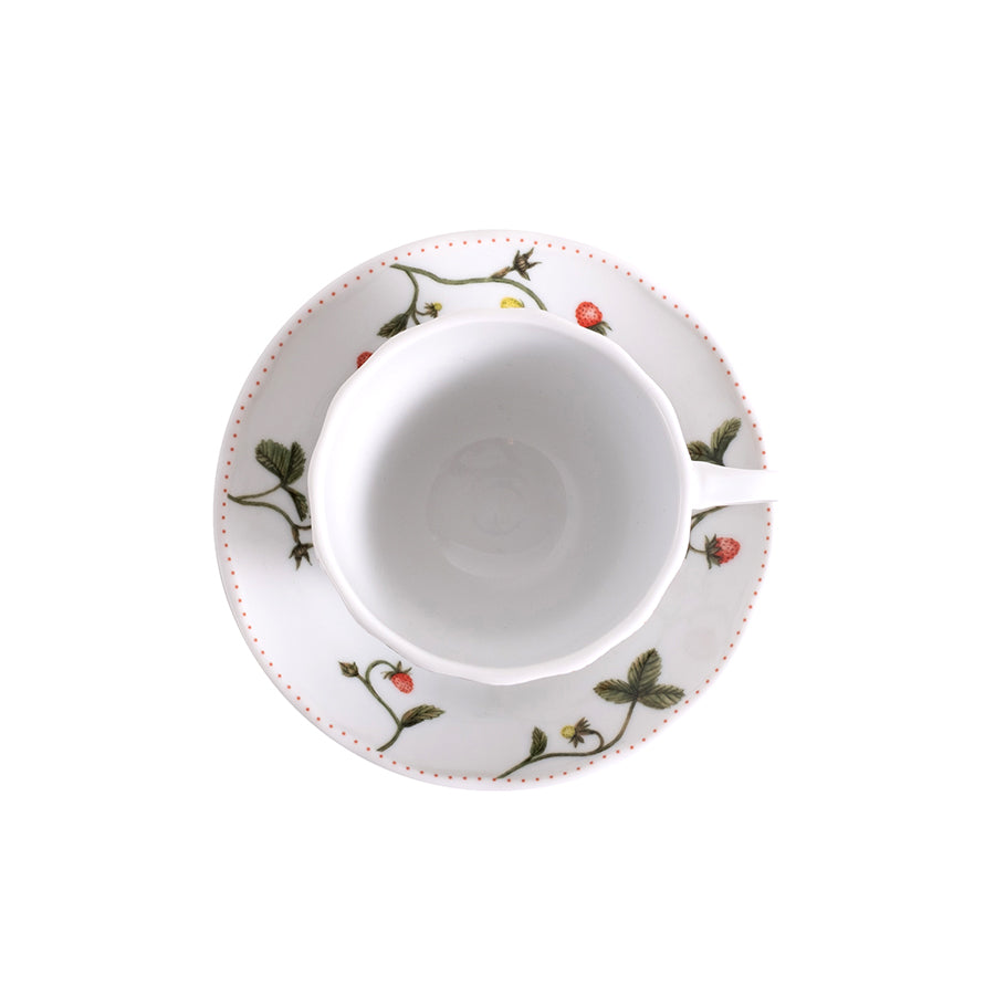 Kopp og skål med det vakre Jordbæreng-mønsteret. Koppen rommer 22 cl og passer helt perfekt til kaffe, og er enten fin alene, eller sammen med andre deler i Jordbæreng-serviset.