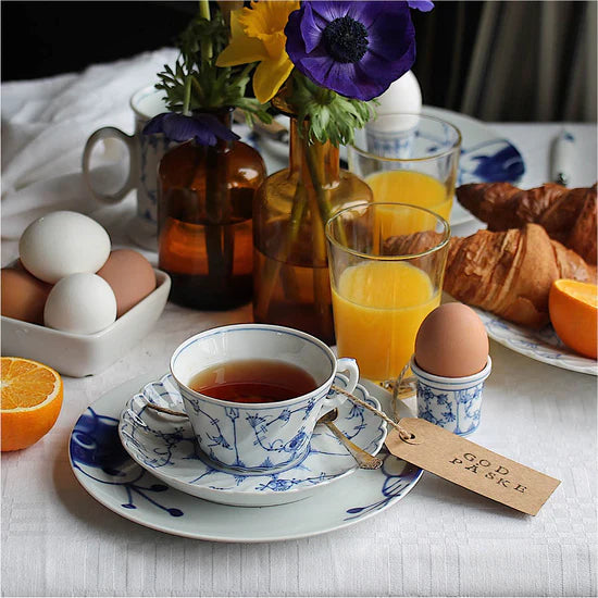 En harmonisk kombinasjon av eleganse og funksjon – Kopp & Skål 23,5 cl i Bogstad stråmønster gir deg det beste av det klassiske blå dekormønsteret i en praktisk og vakker utforming. Denne kombinasjonen samler kopp og skål i ett sett, som gir plass til en liten godbit ved siden av.
