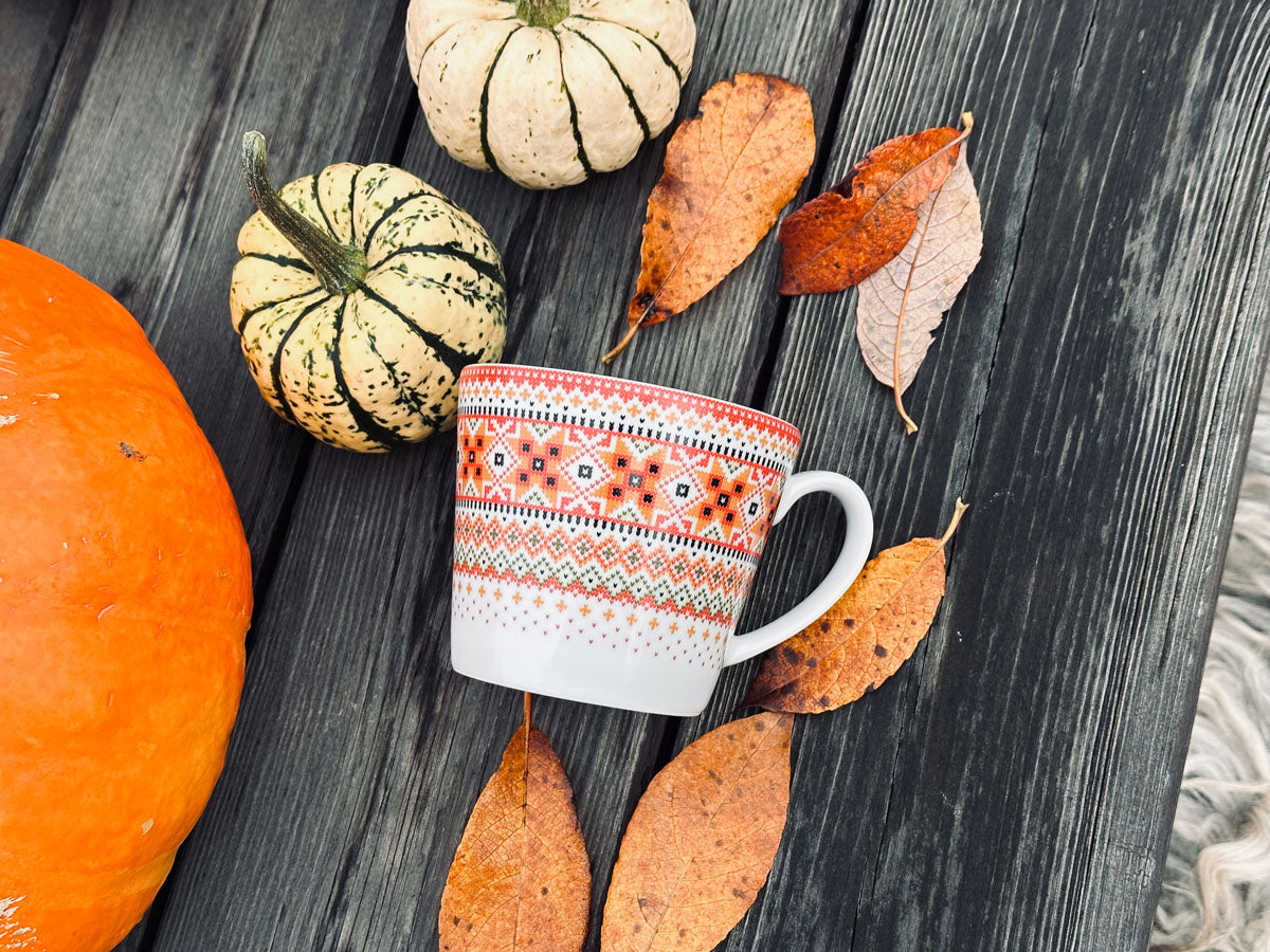 Da Porsgrund Porselænsfabrik ønsket sitt eget strikkemønster var det naturlig å hente inspirasjon lokalt. Derfor ble farger og mønster inspirert av skjortebroderier fra Øst-Telemarksbunaden. Kombinasjonen av strikk, bunad og porselen går opp i en høyere enhet og vi håper dette kan være en hyllest til norsk håndverk.