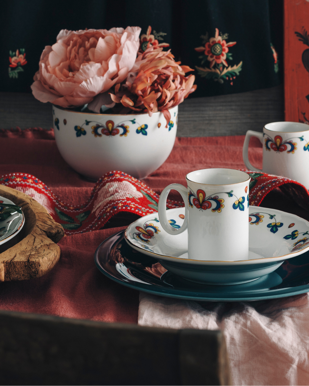 Bondemønster ble lansert i 1932 og har med tiden fått stadig flere deler. Sammen med Nisseserviset er Bondemønster blant de aller mest tradisjonsrike serviser vi har her i landet. Vi i Porsgrunds Porselen er stolte av å kunne føre denne delen av norsk kulturarv videre. Høybrent feltspatporselen er den porselenskvaliteten Porsgrunds Porselænsfabrik har produsert siden 1887, altså fra begynnelsen. Det høybrent porselenet regnes som den edleste kvaliteten av porselen og kjennetegnes ved at det er gjennomskinnelig hvitt med en klar glansfull glasur. Høybrent porselen består kun av rene naturmaterialer, er 100% tett, svært robust og er velegnet til både fest, og hverdagsbruk.