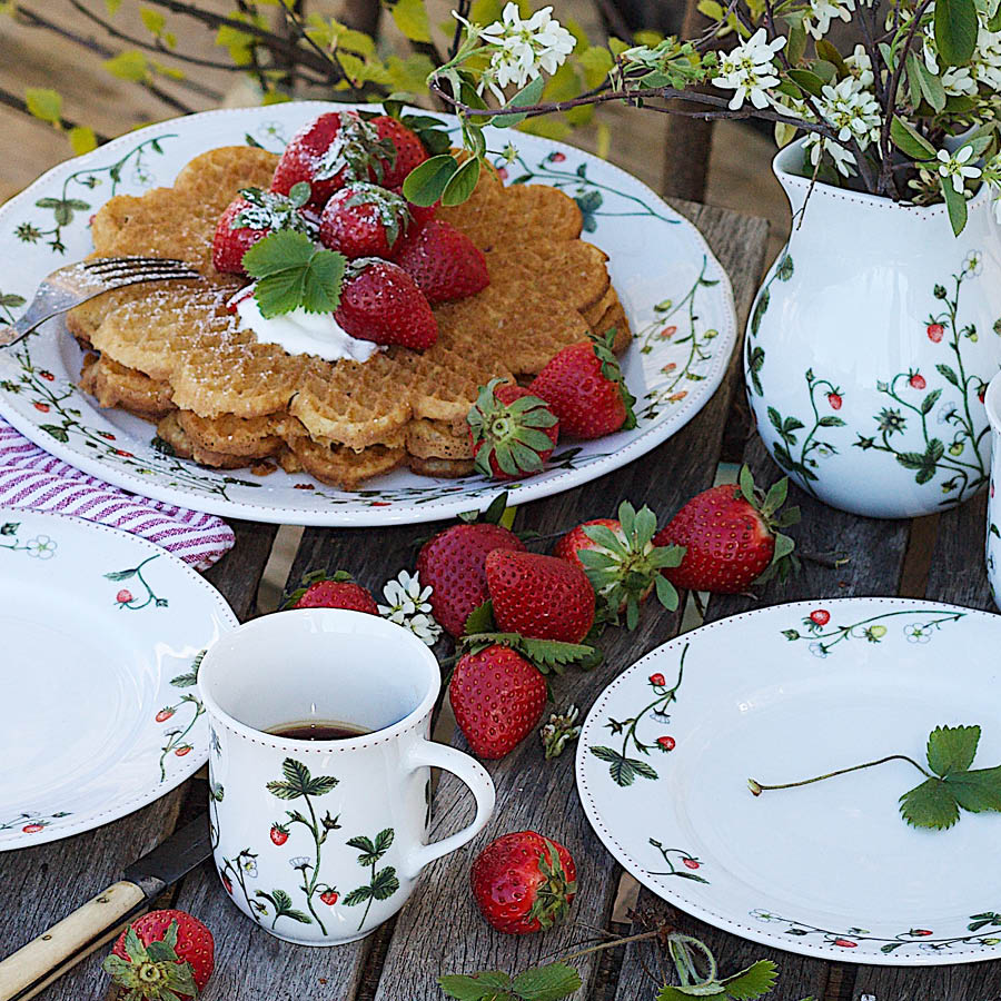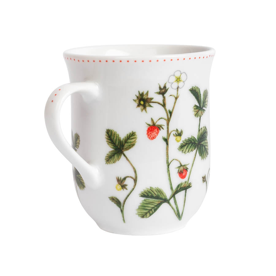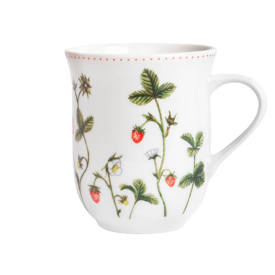 Krus med hank, rommer 25 cl. Nyt kaffe eller te mens du snuser inn sommeren. Hører til serien Jordbæreng, et nostalgisk sommerservise som er inspirert av barndommens somre og små, velduftende markjordbær. Med Jordbæreng kan du dekke de nydeligste jordbærbord, enten du serverer jordbær med vaniljesaus, inviterer til sommermat på terrassen eller skal servere kaffe og kake i hagen.