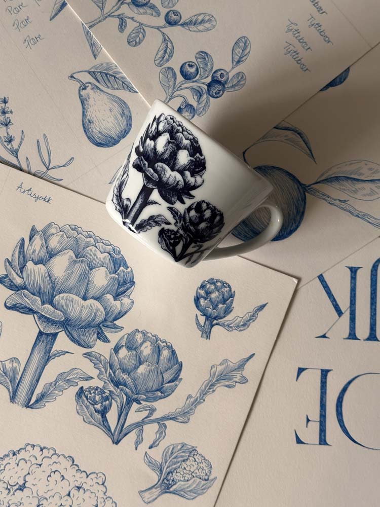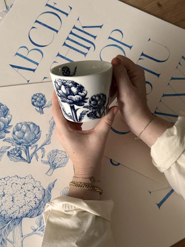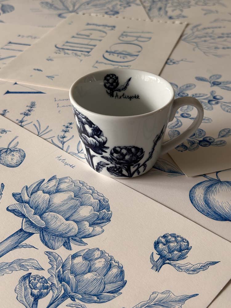 Bokstavkrus A er dekorert med en håndtegnet artisjokk – en plante kjent for sin karakteristiske form og sitt rike uttrykk. Illustrasjonen gir kruset en tydelig identitet og et klassisk, botanisk preg. Et personlig krus til deg selv eller noen du er glad i.