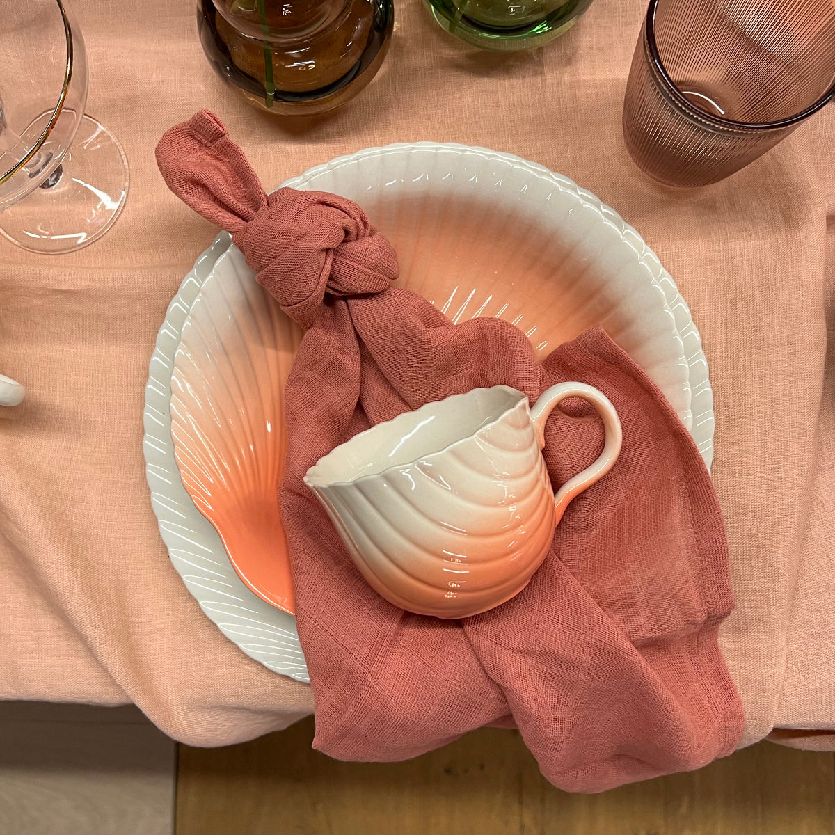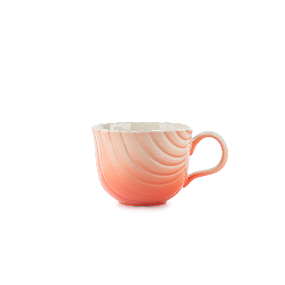 Kruset i korall kombinerer funksjonalitet med et organisk design inspirert av havets former. De bølgende kantene gir et behagelig grep, mens den varme fargetonen tilfører energi til både morgenkaffen og kveldsteen. Perfekt for varme drikker, kalde forfriskninger eller en kreativ servering av desserter – et blikkfang på bordet året rundt.