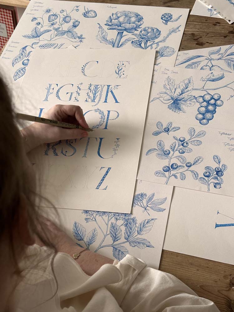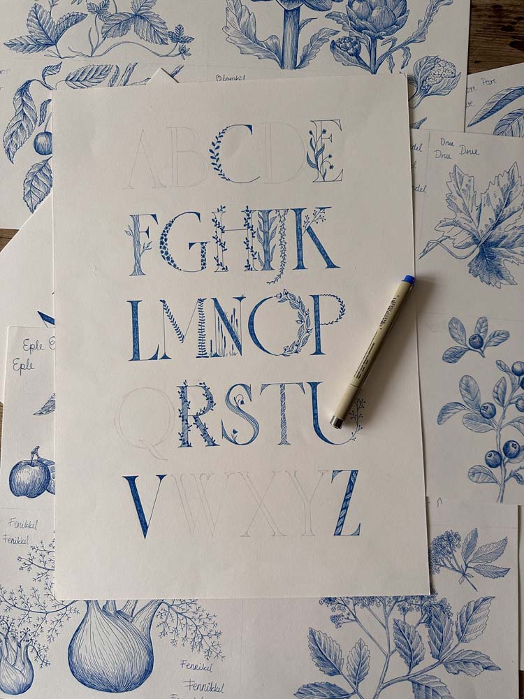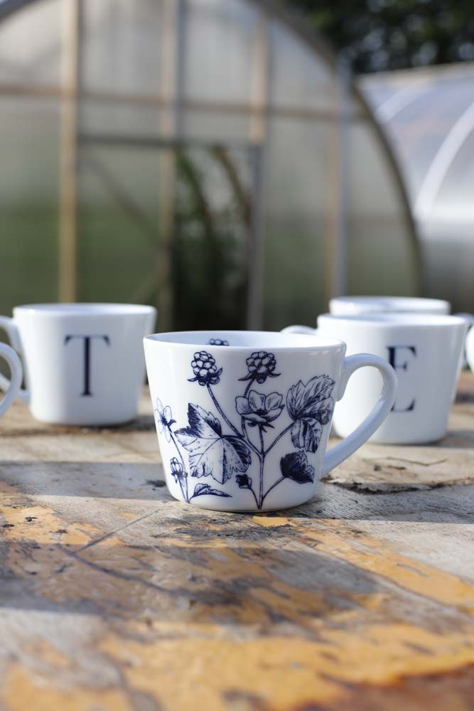 Bokstavkrus M har en håndtegnet illustrasjon av målte, en plante med grafisk og særpreget form. Motivet gir kruset karakter og et litt uventet uttrykk.