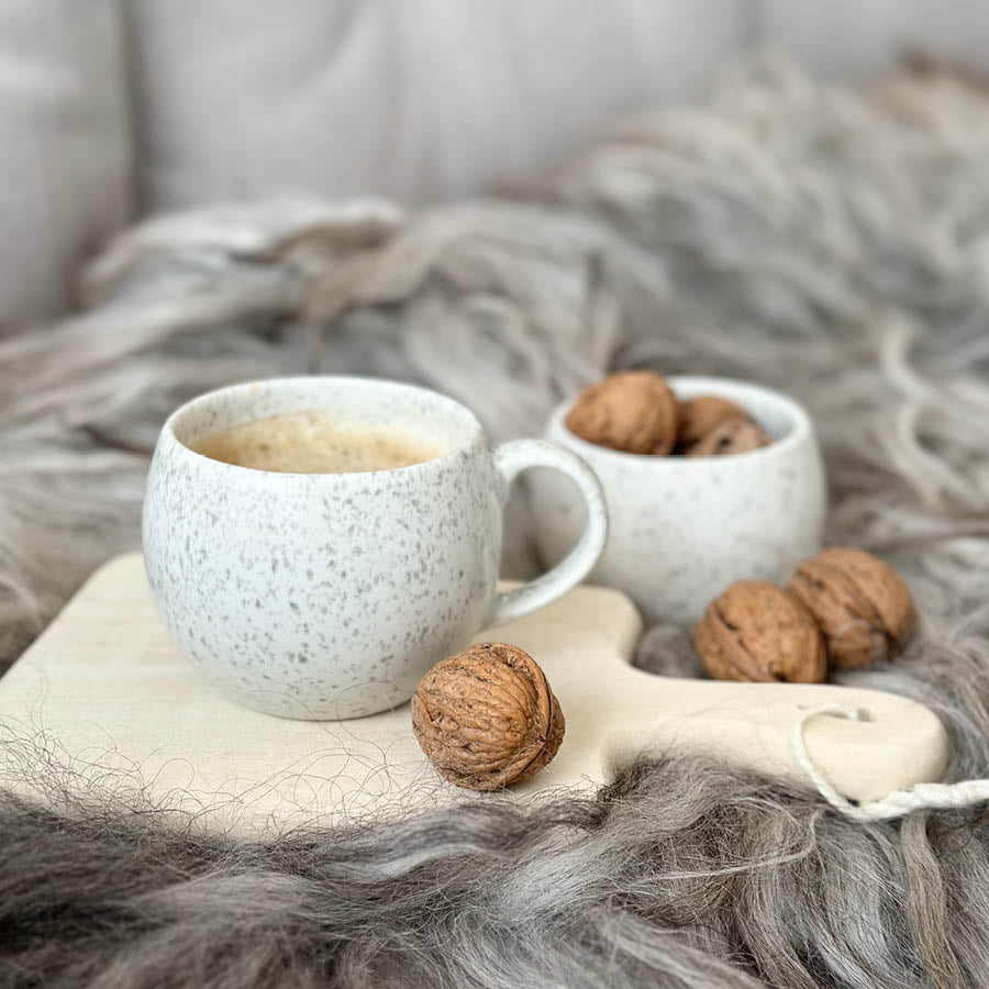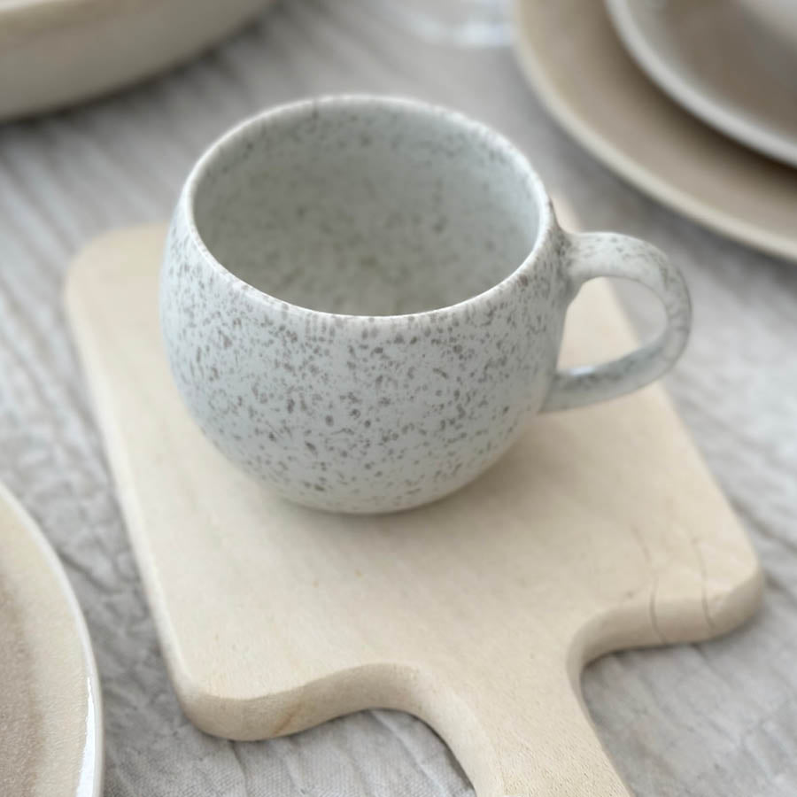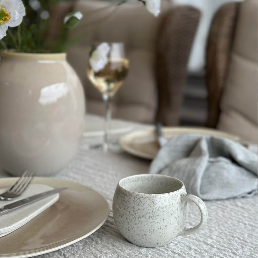 Dette runde kruset med hank i lys granitt har en reaktiv glasur som skaper en unik tekstur og et levende uttrykk. Produktet er håndlaget, noe som gjør hvert krus unikt – små variasjoner i utseende er en del av sjarmen. Med sin myke granittfarge og tidløse design bringer kruset en naturlig eleganse til hverdagen, perfekt til både kaffe og te. Natur-serien er en hyllest til landskapet og naturens egenart.