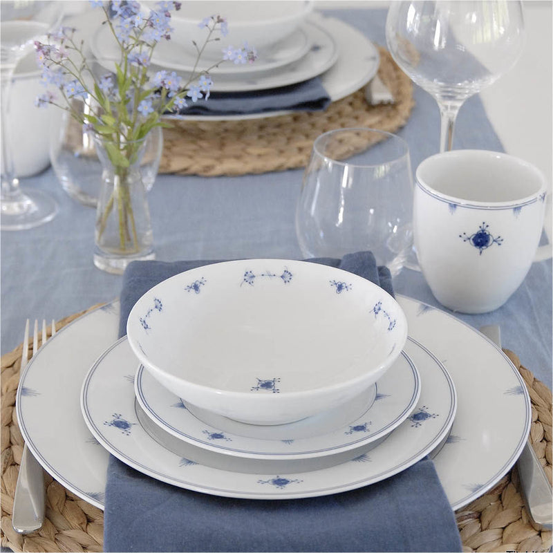 Ministrå – Klassisk eleganse i moderne innpakningMinistrå-serien er en forenklet og modernisert versjon av det tradisjonelle Bogstad Stråmønsteret, designet med tanke på dagens livsstil. Serien bevarer den delikate, håndmalte karakteren fra originalen, men tilfører et friskt og tidløst preg som passer hele året. Laget av slitesterkt høybrent feltspatporselen, tåler Ministrå daglig bruk og kan trygt brukes i oppvaskmaskin og mikrobølgeovn.