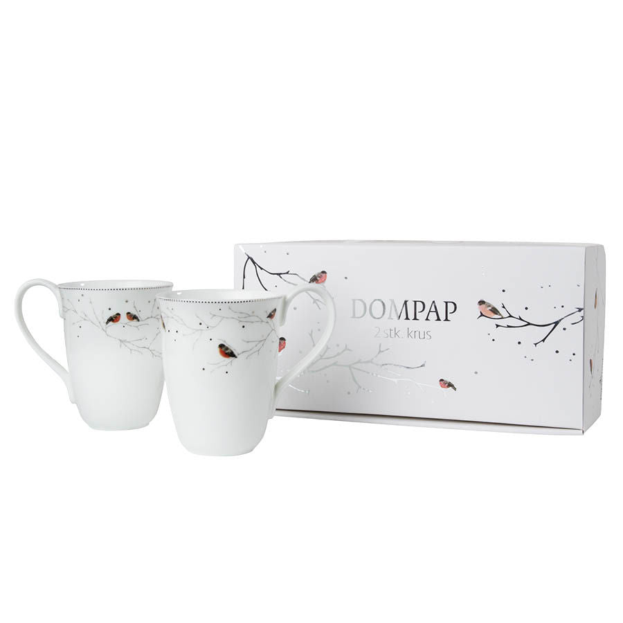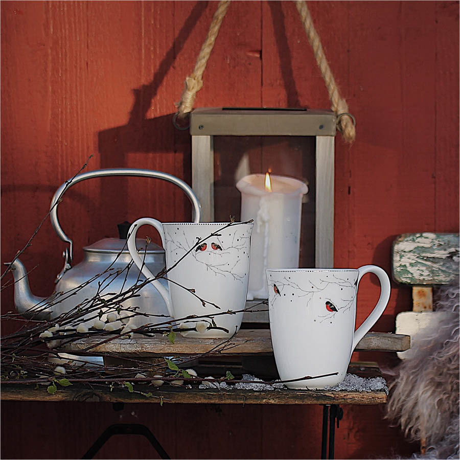 Dompap krus, 44 cl, kommer i en praktisk 2-pk og er perfekt for de som liker å nyte varme drikker i større kopp. Disse krusene passer utmerket til te, men er også ideelle for kaffe eller kakao. Den lille versjonen på 24 cl er perfekt for kaffe, mens den større varianten er flott for de som ønsker en mer fyldig drikkeopplevelse. Med sitt elegante design i benporselen og luksuriøse detaljer i ekte platina, tilfører disse krusene en sofistikert og koselig atmosfære til enhver anledning. Enten du vil nyte en varm drikke alene eller dele hyggelige stunder med venner og familie, er dette settet et perfekt valg.