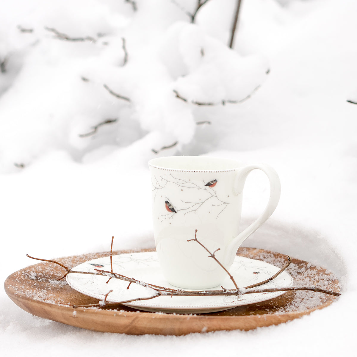 Hva er vel koseligere enn en liten, lubben, rød fugl på en rimfrostet gren? Dompap-serviset er utviklet med den norske vinteren i tankene og er det perfekte vinterservise til julehøytiden. Den fargesterke dompapen skinner på dette elegante penserviset i benporselen, satt mot et bakteppe av blekt vinterlys og nakne grener. Med små, luksuriøse detaljer i ekte platina tilfører Dompap-serviset både varme og eleganse til ethvert dekket bord. Serviset er designet av Maud Gjeruldsen Bugge og laget for å skape koselige stunder.