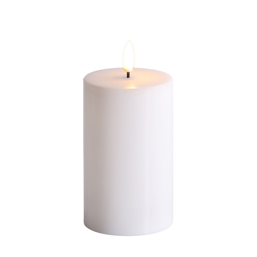 Det minste Nordic Light LED-kubbelyset på 12,5 cm er en stilren og stemningsfull detalj i hjemmet. Med sin naturtro flamme og voksete overflate gir det en lun atmosfære. For et harmonisk uttrykk, kombiner det med de høyere variantene på 15 cm og 20 cm.