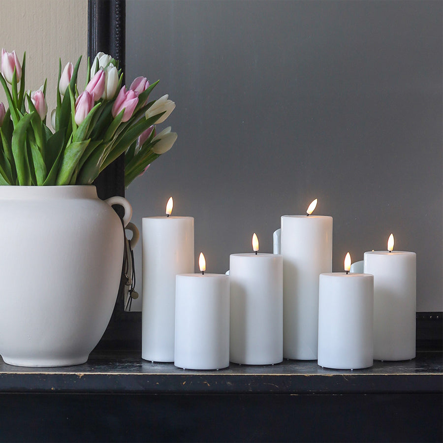 Nordic Light LED-kubbelys i 15 cm er et stemningsfullt tilskudd til ethvert rom. Det har en naturtro, bevegelig flamme og en vokset overflate som gir følelsen av et ekte stearinlys. Kombiner det med de større og mindre variantene på 20 cm og 12,5 cm for et elegant uttrykk.