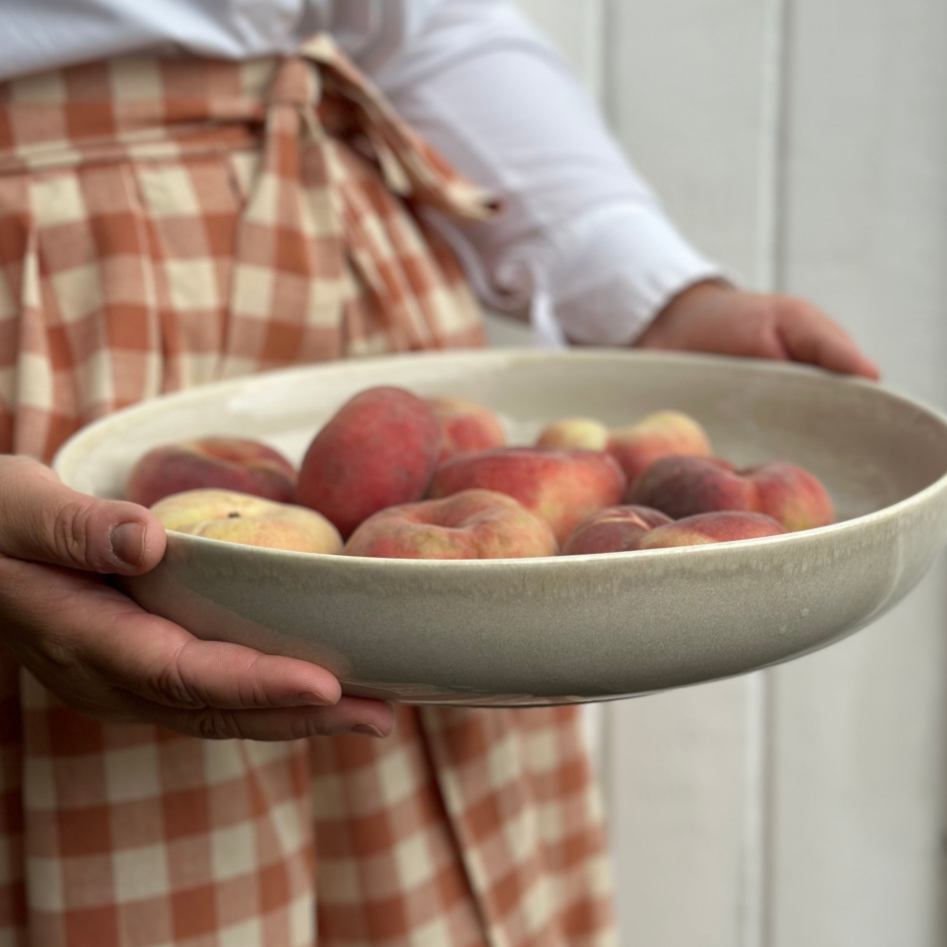 Lav bolle, 33 cm, i fargen Latte er et stort og elegant serveringsfat i Ellie-serien. Med sin varme beige tone og brede design er denne bollen perfekt for servering av store salater, frukt eller middagsretter. De myke kantene og delikate pastellfargen gir bollen et sofistikert uttrykk, som gjør den like pen å ha stående fremme som å bruke til servering.