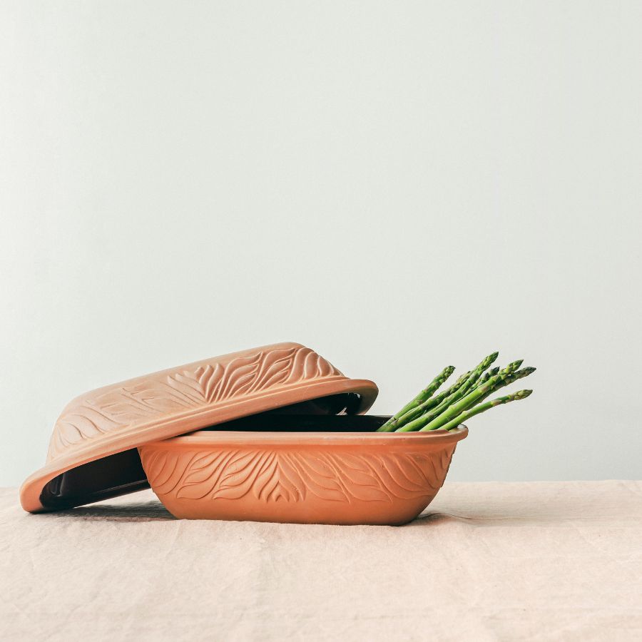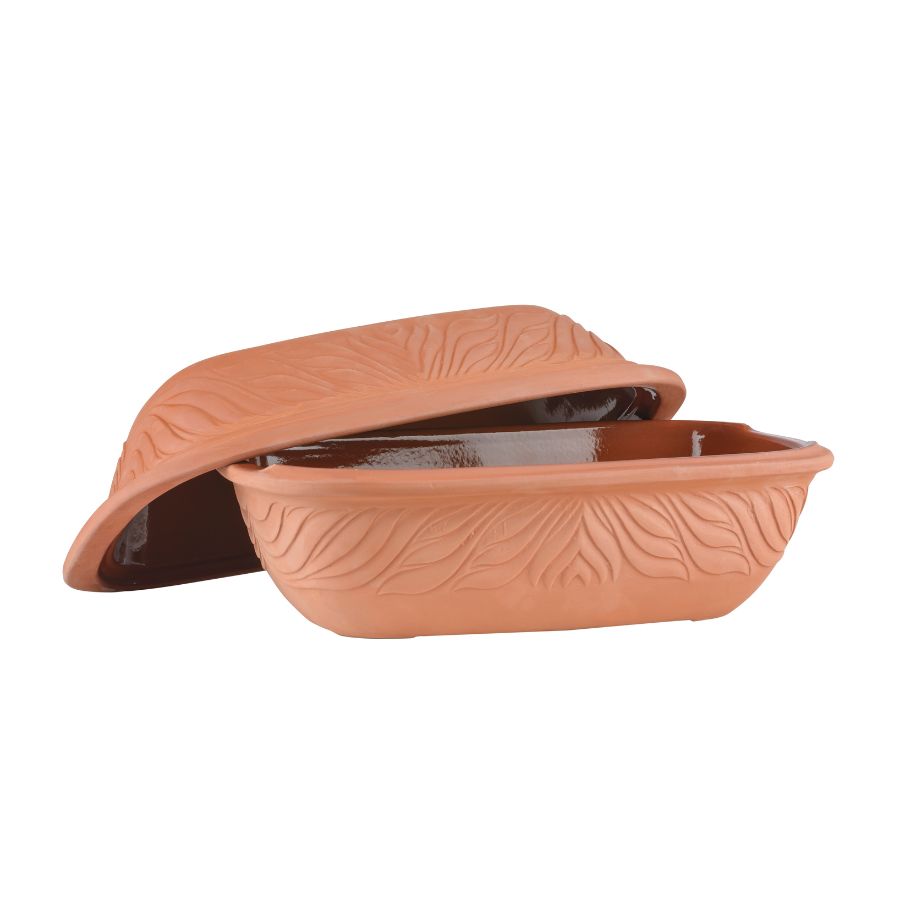 Leirgryte Terra kombinerer tradisjonelt håndverk med moderne funksjonalitet. Med en kapasitet på 3 liter er den perfekt for gryteretter, saftige steker, supper og grønnsaksretter. Den naturlige porøsiteten i terrakottaen holder fuktigheten inne, slik at maten blir mør og smakfull.