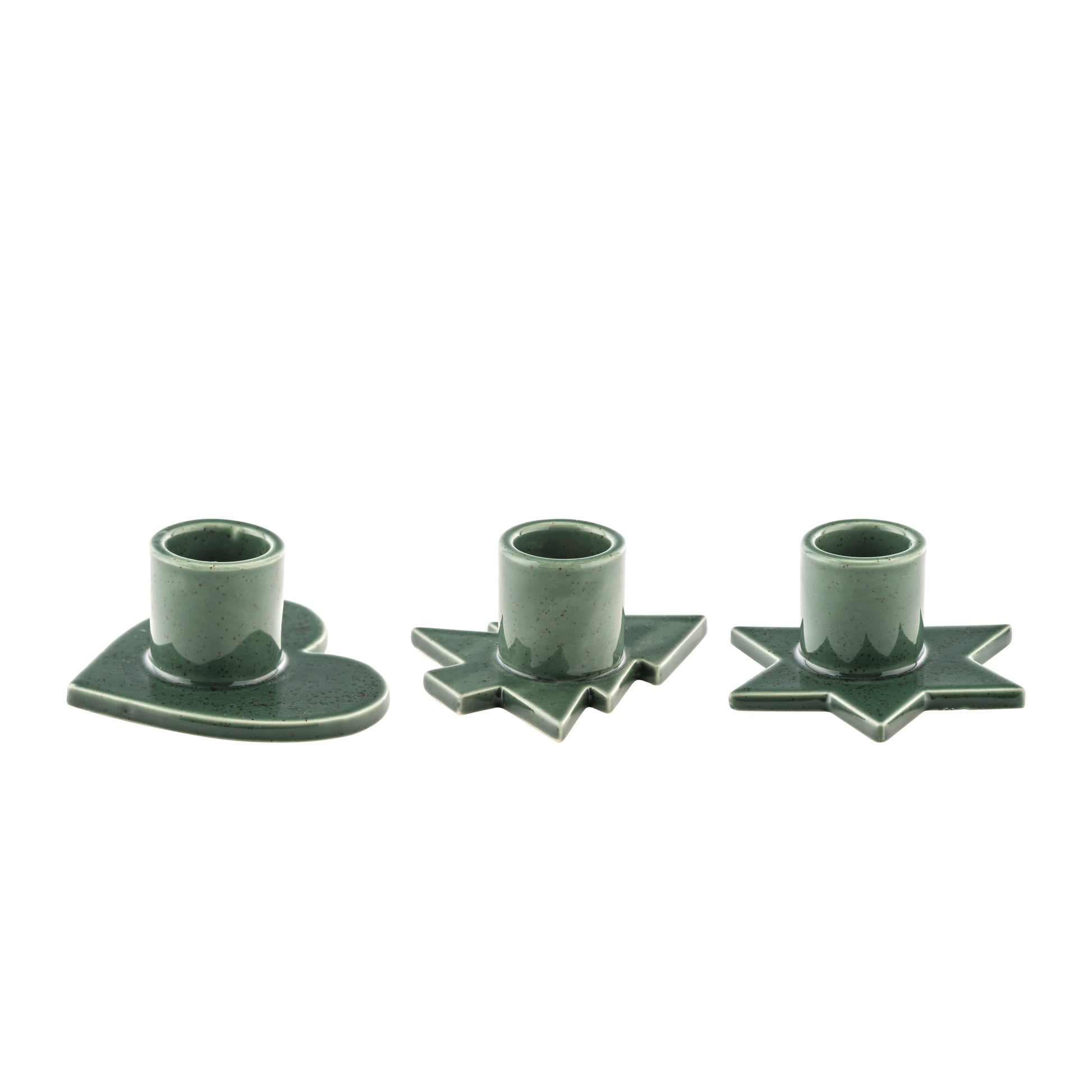 En stemningsfull pakke med tre lysestaker i porselen formet som stjerne, hjerte og tre. Perfekt til julebordet, adventstiden eller som små dekorasjoner som sprer lys og varme i hjemmet.