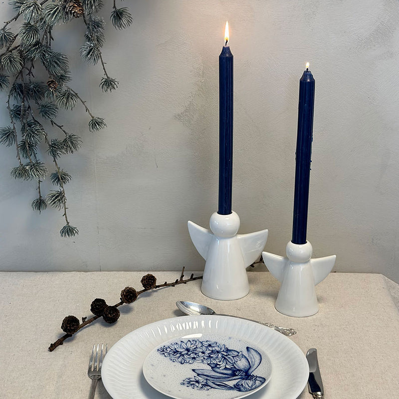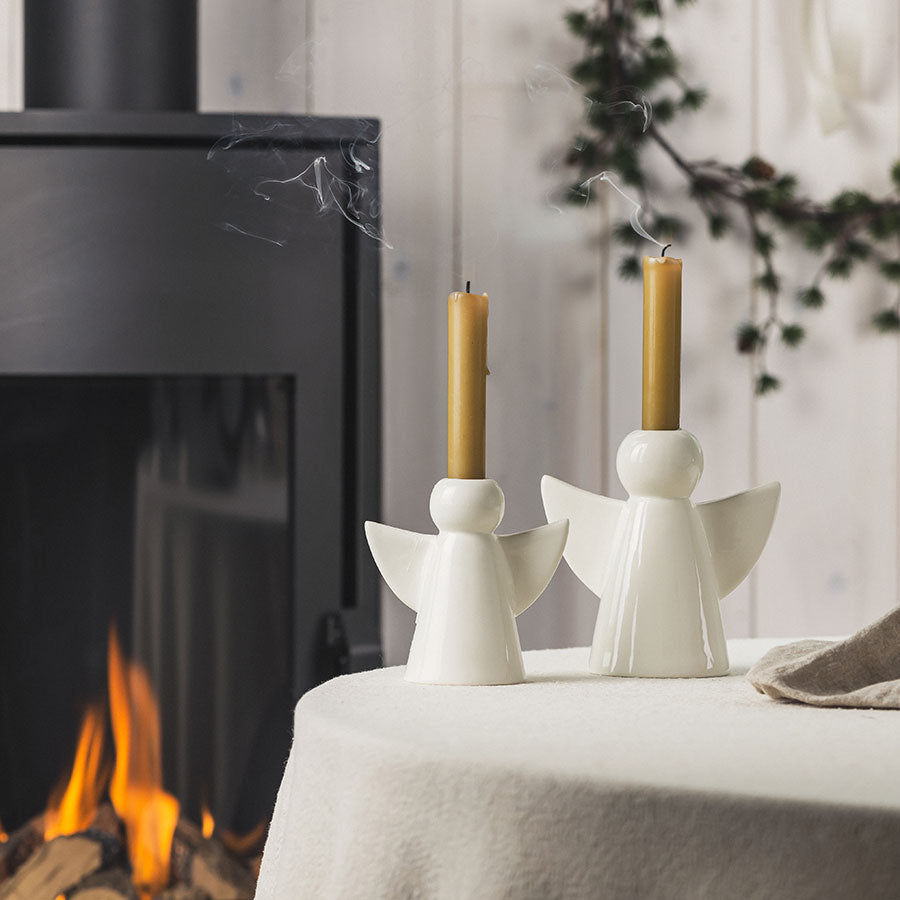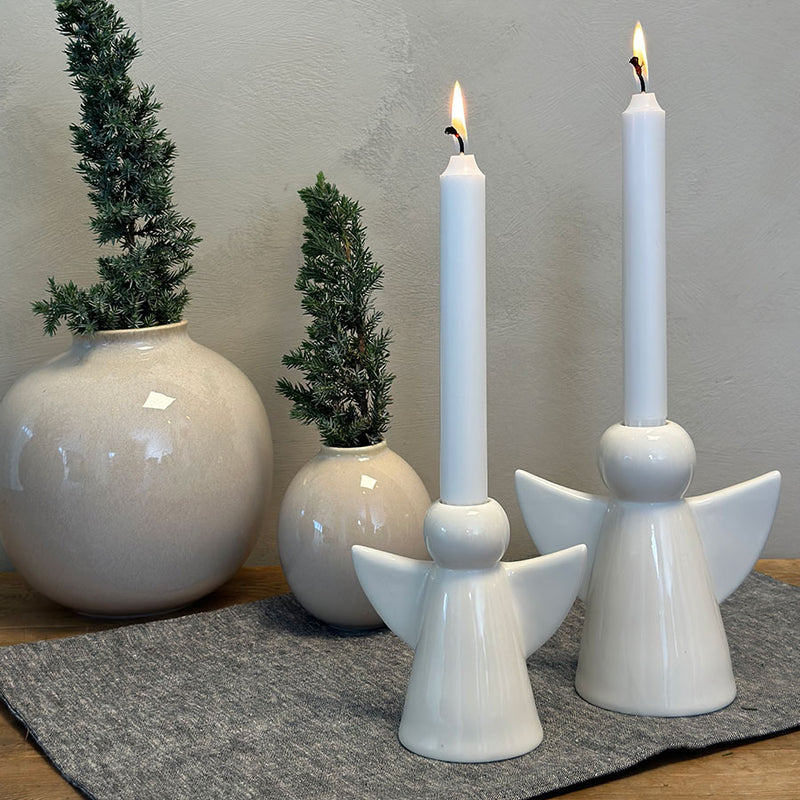 Et par elegante, tidløse englelysestaker i to størrelser som selges samlet. Disse er enkle å plassere og passer godt inn i de fleste hjem.