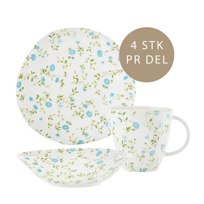 Maia-serien kombinerer blomstrete detaljer med et lyst og lett uttrykk, og passer like godt til frokostbordet, som til små hageselskaper. Den blå varianten gir serviset et rolig og behagelig preg, perfekt for deg som ønsker en avslappet og stilfull borddekking.
