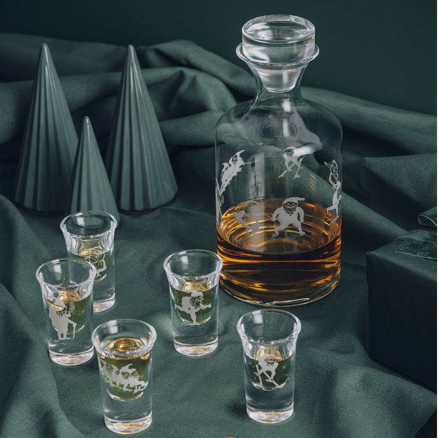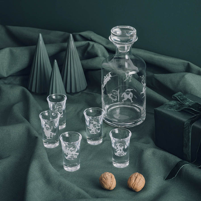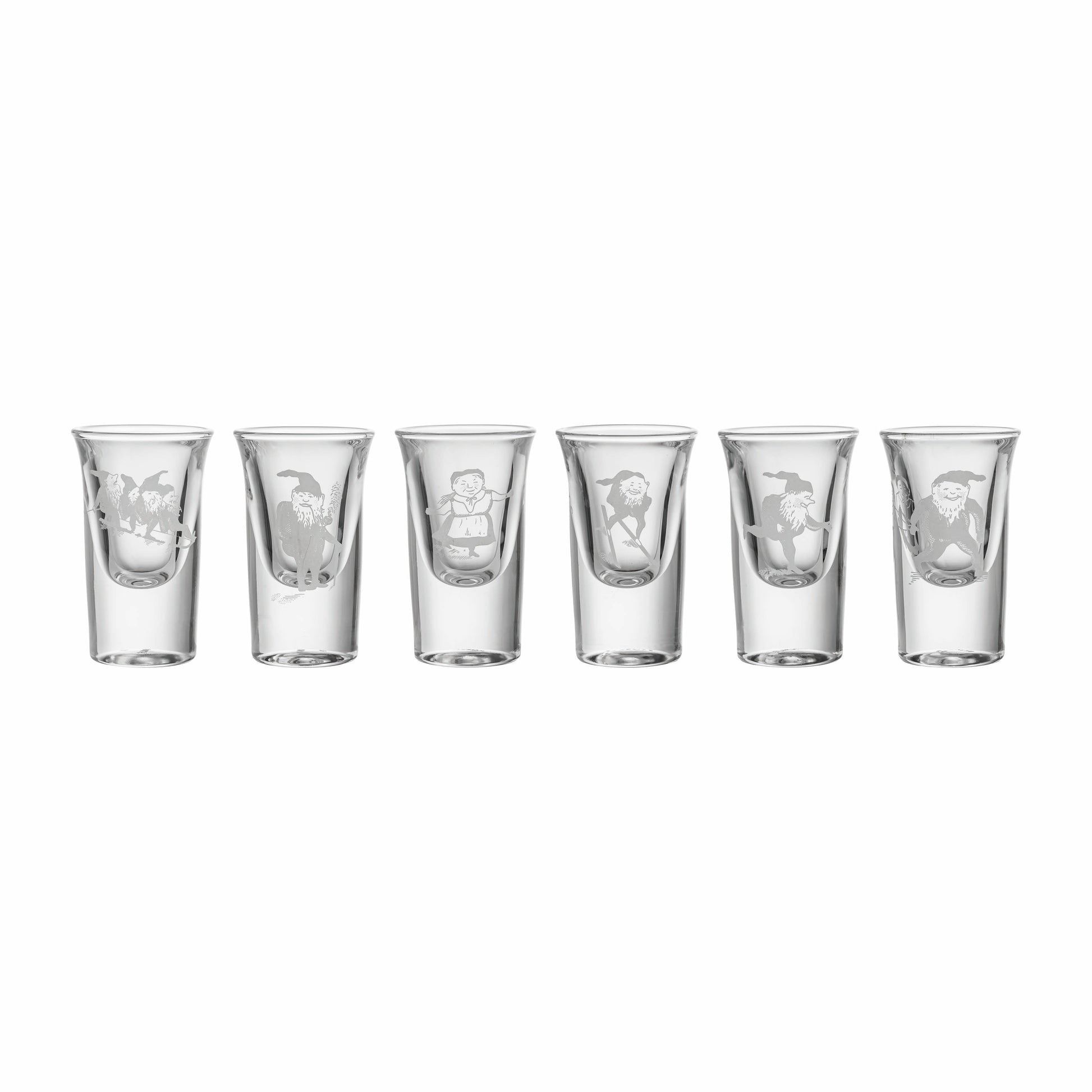 Dekk bordet med dette settet av seks drammeglass, hver med ulike motiver fra det kjente og kjære Nisseserviset. Glassene er dekorert med lekne fjøsnisser som har spredd glede på norske julebord i over 120 år. Disse drammeglassene bringer både glede og tradisjon til julefeiringen, og er en perfekt gave til noen som allerede har begynt å samle på Nisseserviset eller som elsker norske juletradisjoner.