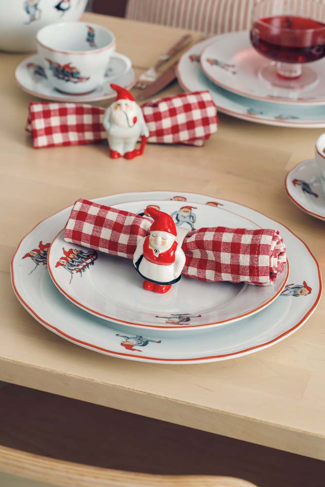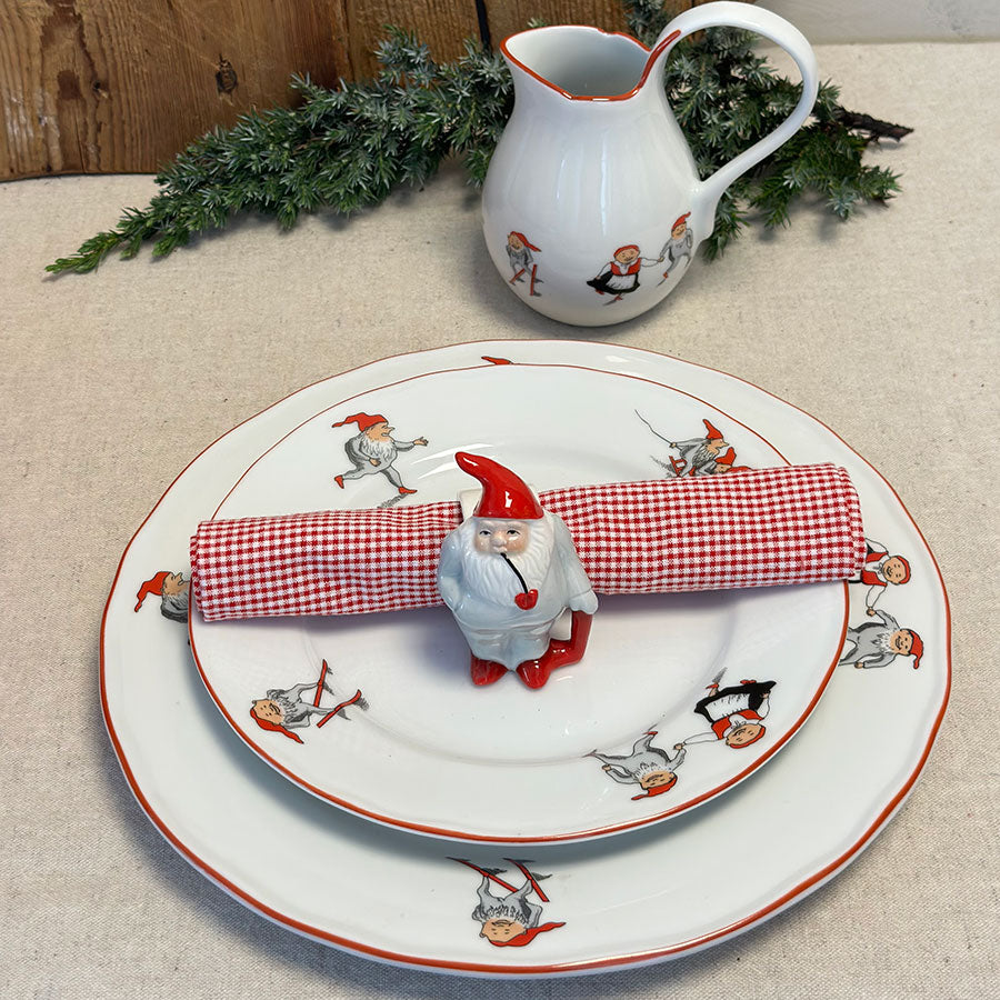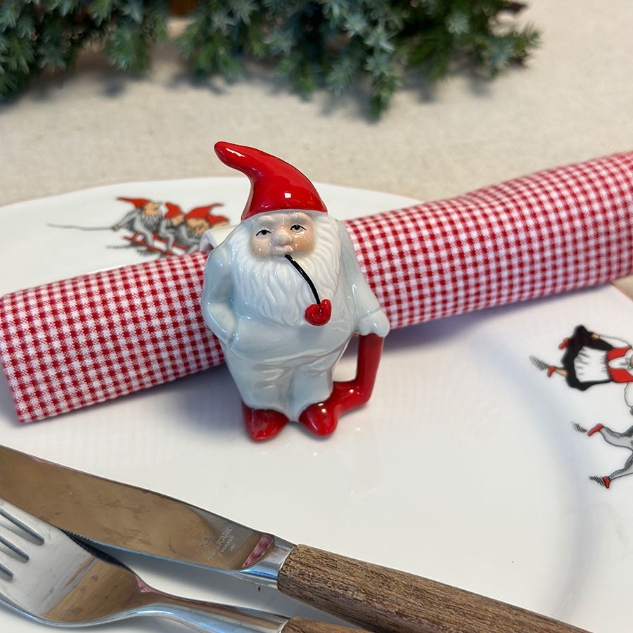 Nostalgisk serviettring med nissemann, i porselen som gir den gode julestemningen. Denne sjarmerende serviettringen er både praktisk og dekorativ, og passer perfekt til julebordet. Den vil uten tvil spre smil blant gjestene og tilføre borddekkingen et lekent preg.