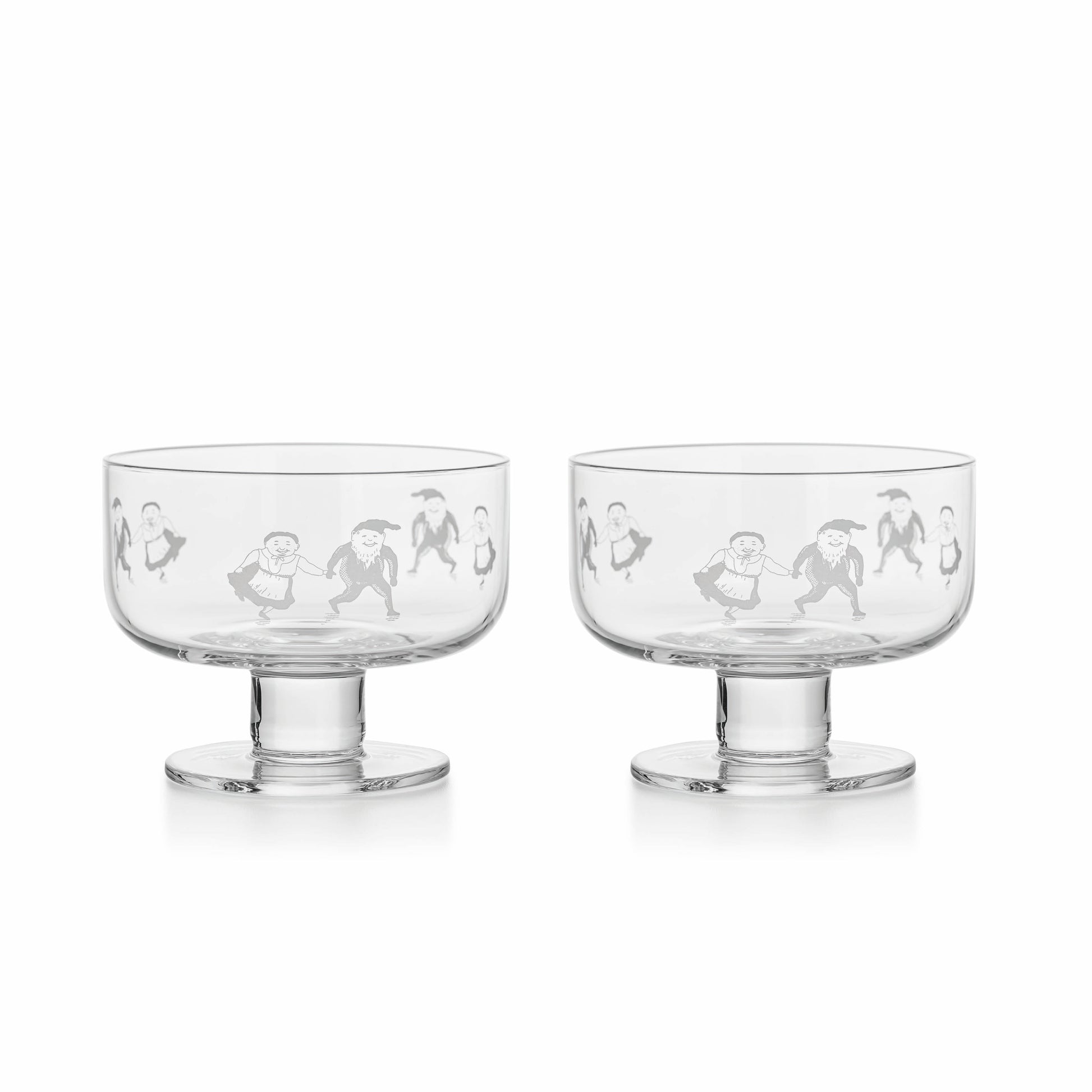 En elegant skål i glass med sandblåste nisser som motiv. Perfekt til dessert, snacks eller småkaker, og kommer i en pakke med to stk. Skaper julestemning på bordet med sitt nostalgiske uttrykk.