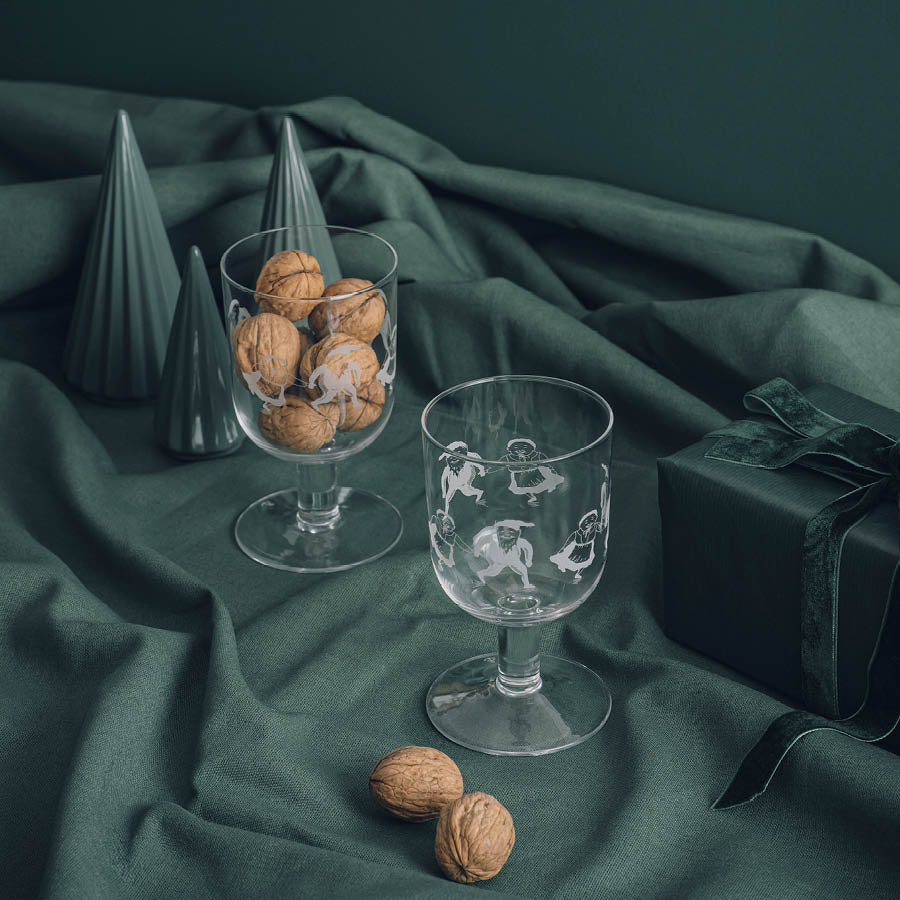 Skap en ekstra stemningsfull julemiddag med disse nydelige nisseglassene på stett. Hvert glass rommer 38 cl, og det tidløse designet er inspirert av det populære Nisseserviset. Perfekt til julebordet eller som en koselig gave til en samler av Nisseserviset. De kommer i en pakke med to og er ideelle for både vin og andre drikkevarer. Disse stettglassene bringer frem den gode, gamle julestemningen og setter prikken over i'en på borddekkingen.