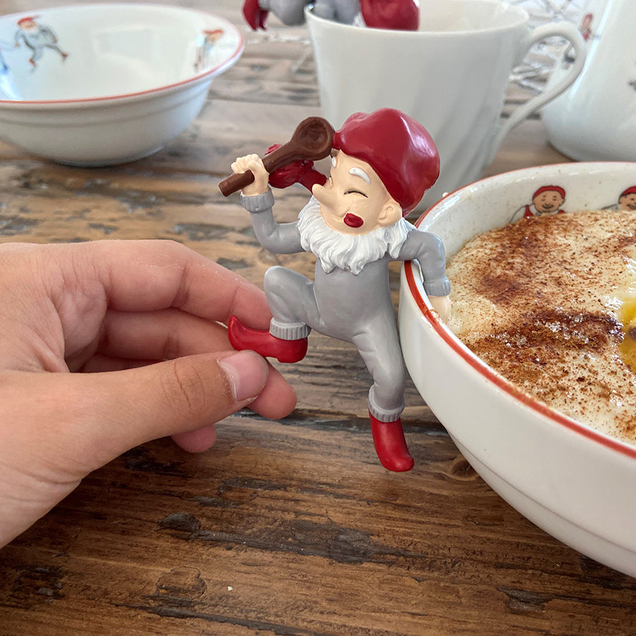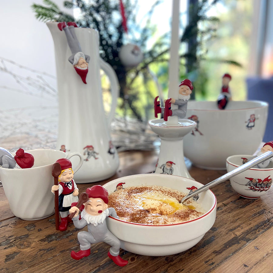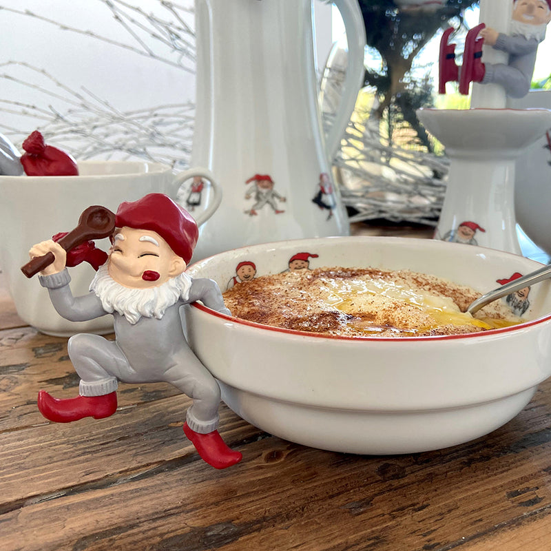 Nissemann med grøtsleiv er en sjarmerende figur som bringer frem minner om tradisjonelle julemåltider. Med sin store grøtsleiv og glade smil, er han klar til å dele julens godbiter med alle rundt bordet. Denne lille lekenissen er perfekt for å skape latter og glede blant gjestene, samtidig som han tilfører et lekent preg til borddekkingen. La nissemannen bidra til å skape en koselig atmosfære og bringe folk sammen i julehøytiden!