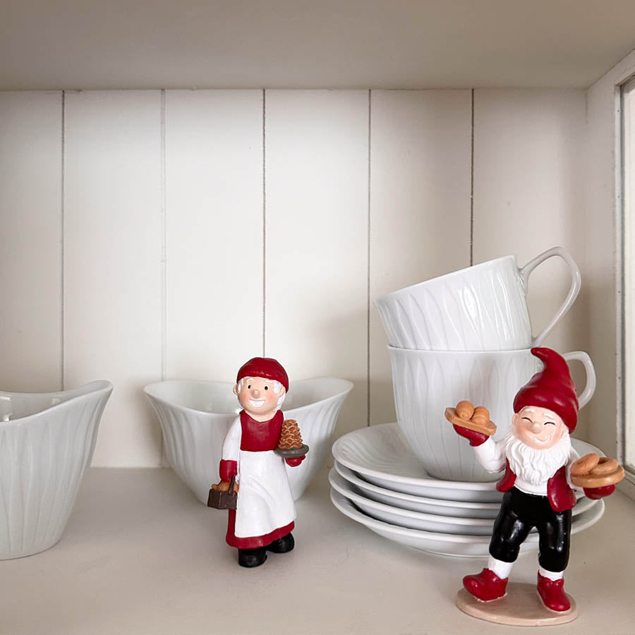 Nissemor med kransekake er en sjarmerende figur som bringer frem minner om tradisjonell norsk julebakst. Med en kransekake i hendene og et fornøyd smil, er hun klar til å bidra til den gode julestemningen rundt bordet. Denne lille lekenissen er perfekt for å skape latter og glede blant gjestene, samtidig som hun tilfører et lekent preg til borddekkingen.