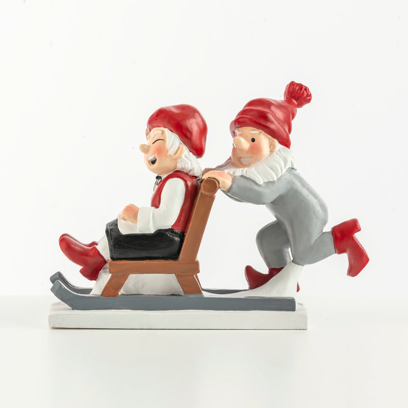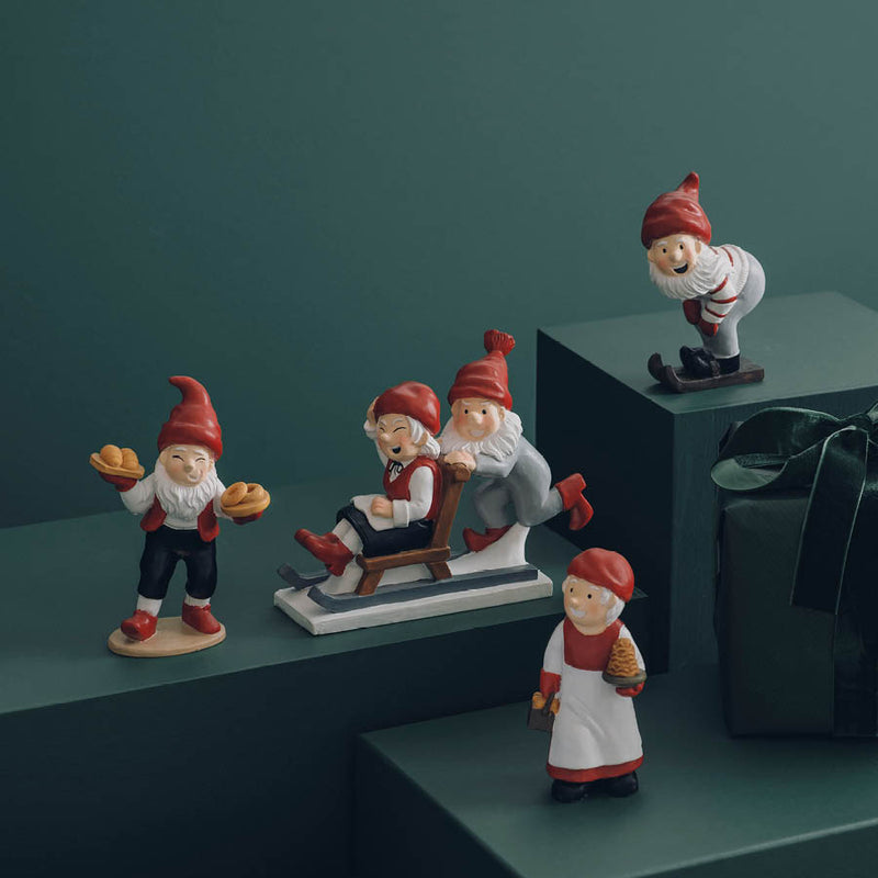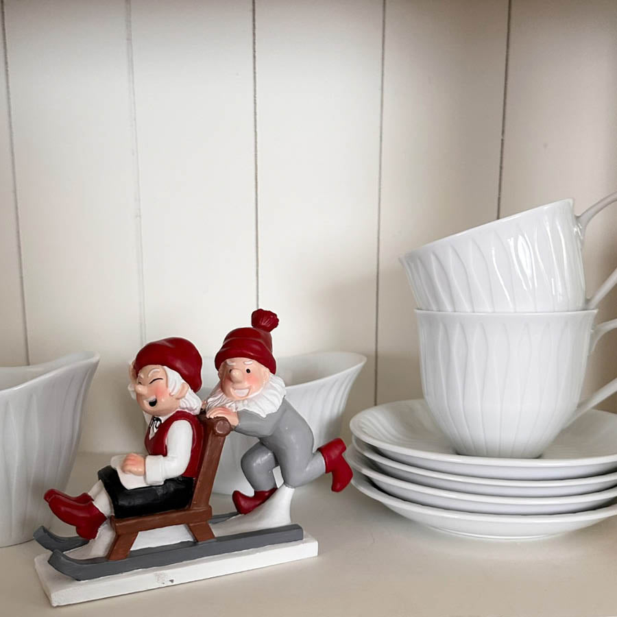 Nissepar på spark er en koselig figur som bringer minner om vinterens lek i snøen. Med et nissepar på en sparkstøtting, er denne figuren perfekt for å tilføye et lekent og nostalgisk preg til julebordet. La dem bringe smil til gjestene og bidra til den varme julestemningen.