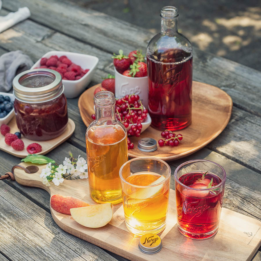 Norgesflasken er ideell til alle typer safting. Den er lekker på bordet, kjempe søt på hytta og perfekt til barnebursdager. Flasken kommer med skrukork som gjør flasken tett.