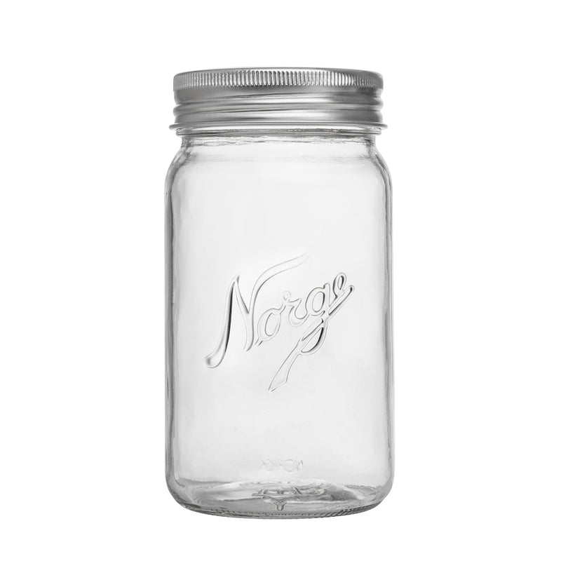 Norgesglasset kan brukes til oppbevaring og sylting. Glass og lokk kan vaskes i oppvaskmaskin.