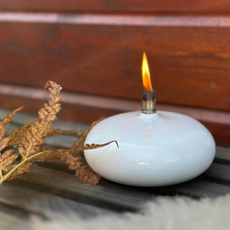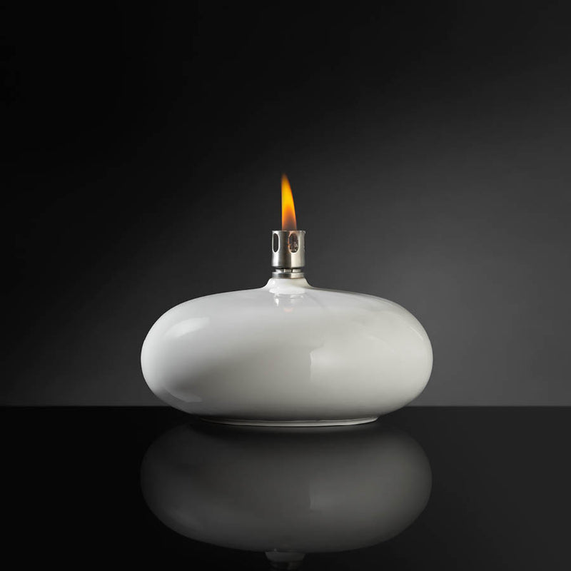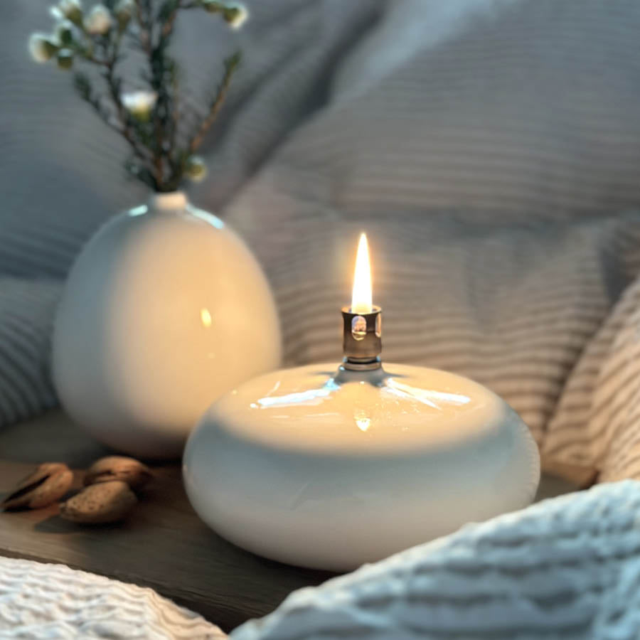 Rullestein, naturlig slipt og formet av vannets bevegelser gjennom tidene, er inspirasjonen bak disse oljelampene i porselen. Lampene gir et stemningsfullt lys og skaper en hyggelig atmosfære i alle rom. Brenneren er laget av stål med en glassfiberveke, og lampene er CE-godkjente.
