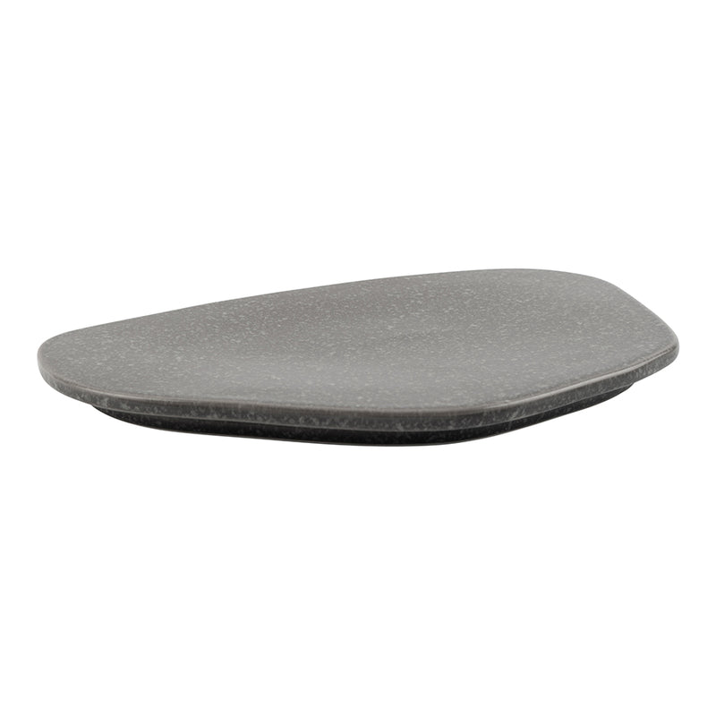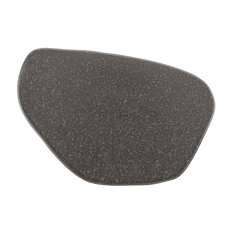 Natur fra Porsgrund Porselænsfabrik Natur er et servise i nordisk stil med organiske former, og farger og materialer inspirert av naturen rundt oss. Vi finner det harde og matte fra fjellet, det myke og lune fra skogen, det blanke og gjennomskinnelige fra vannet, og det faste porselenet fra jorden. Kvalitetsproduktene i glass og porselen i ulike størrelser, kan settes sammen i mange vakre kombinasjoner. Organisk asjett 24x15,5 cm mørk granitt. Spillet i glasuren gir det lille ekstra til en vakkert dandert tallerken. Dette er et servise med en reaktiv glasur og produktet er håndlaget. Det vil si at hvert produkt er unikt og ulikheter i utseende kan forekomme. Nettopp av denne grunn er serviset kalt Natur, fordi det skal gjenspeile landskapet og naturen.