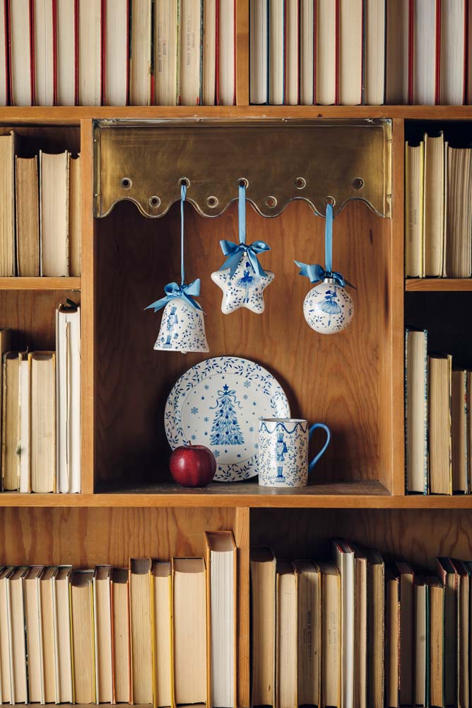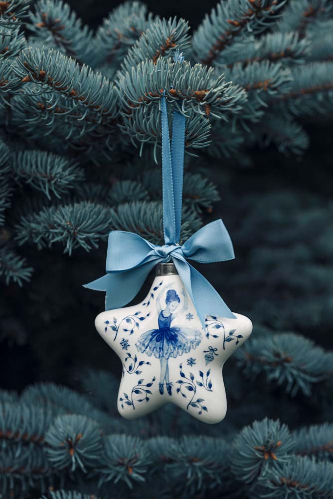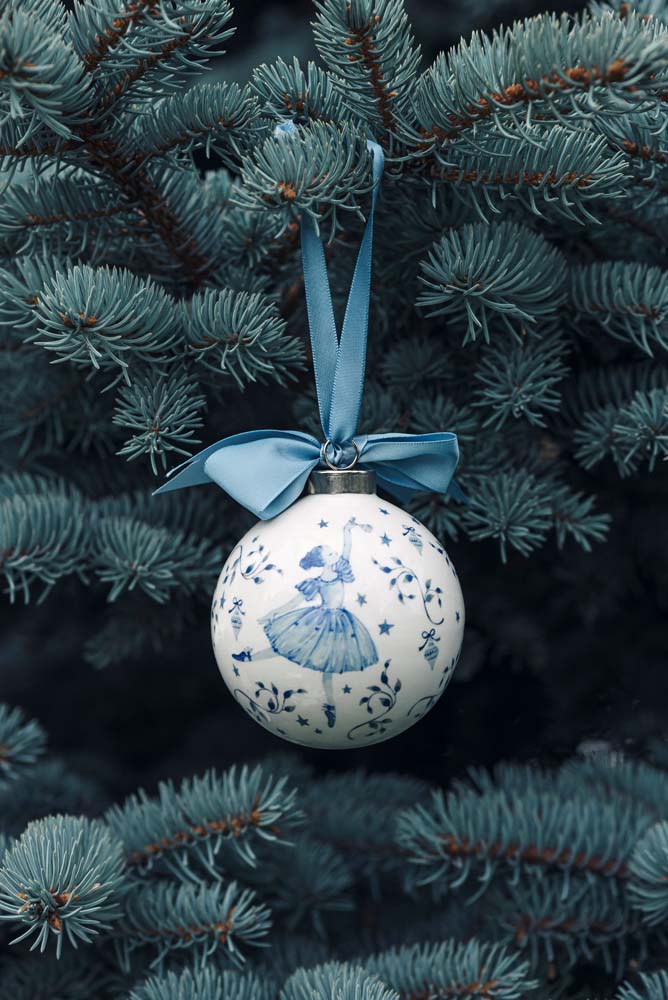 Tre nydelige store julekuler med blå ballerina dekor. Årets store populære nyhet!