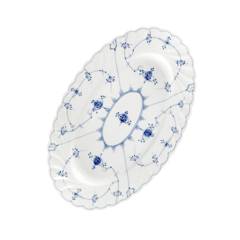 Det ovale fatet på 33,5 cm i Bogstad Stråmønster er det minste av de tre ovale fatene i serien. Det passer perfekt til servering av småkaker, frukt eller mindre retter. Med sitt håndmalte stråmønster er fatet både funksjonelt og dekorativt.