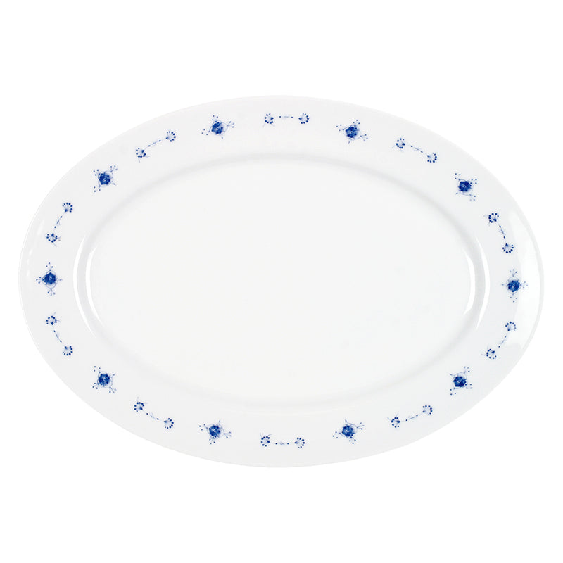 Dette store ovale serveringsfatet på 36 cm er det perfekte midtpunktet på bordet. Med Ministrå-mønsteret elegant plassert rundt kanten, gir det et tidløst og klassisk preg til serveringen. Fatet er ideelt for å servere større retter som steker, fisk eller rause porsjoner av grønnsaker og salater. Laget av høybrent feltspatporselen tåler fatet daglig bruk, oppvaskmaskin og mikrobølgeovn. Kombiner det med andre deler fra Ministrå-serien for en harmonisk og gjennomført borddekking.