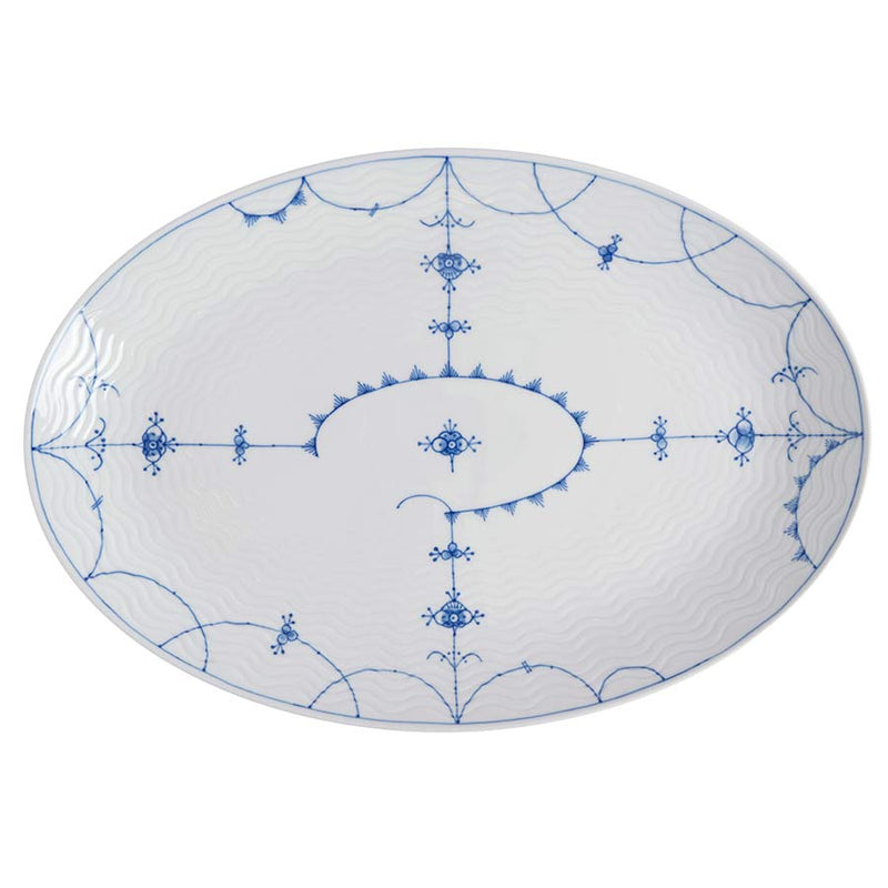 Ovalt fat på 39 cm, perfekt for servering av større retter som stek, fisk eller delikate anretninger. Den elegante utformingen med bølge-relieff og håndmalt stråmønster tilfører borddekkingen en klassisk og tidløs estetikk.