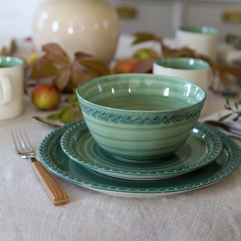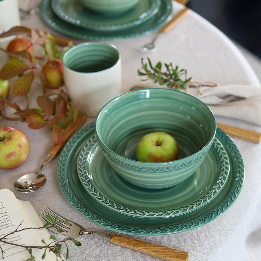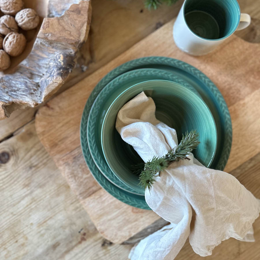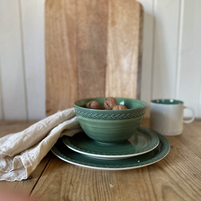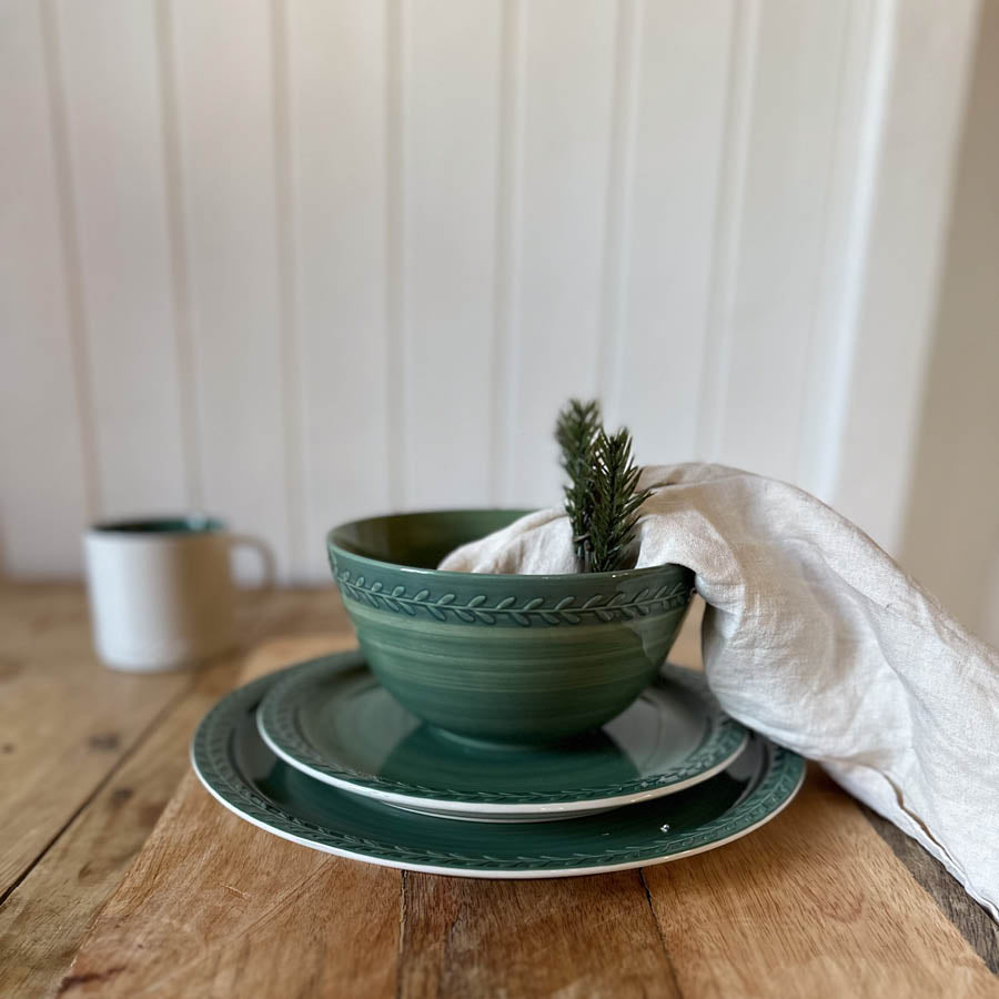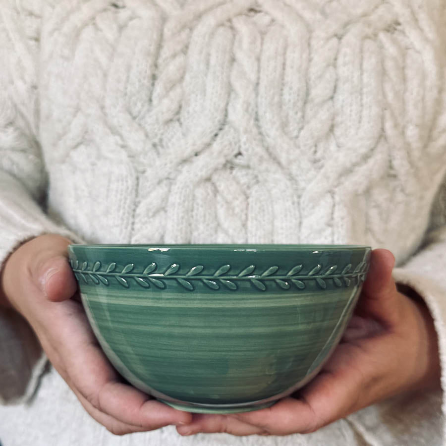 Denne allsidige bollen passer perfekt til frokostblandinger, salater og snacks. PORS-bollen er håndmalt i en vakker grønnfarge, både utenpå og inni, som gir et friskt og harmonisk uttrykk. Det delikate relieffet av porsplanten langs kanten tilfører en rustikk sjarm og gjør bollen både taktil og estetisk tiltalende. Med sin inspirerende design, som hyller myrica gale, porsplanten som vokser i Porsgrunns natur, er denne bollen et flott tillegg til ethvert bord.