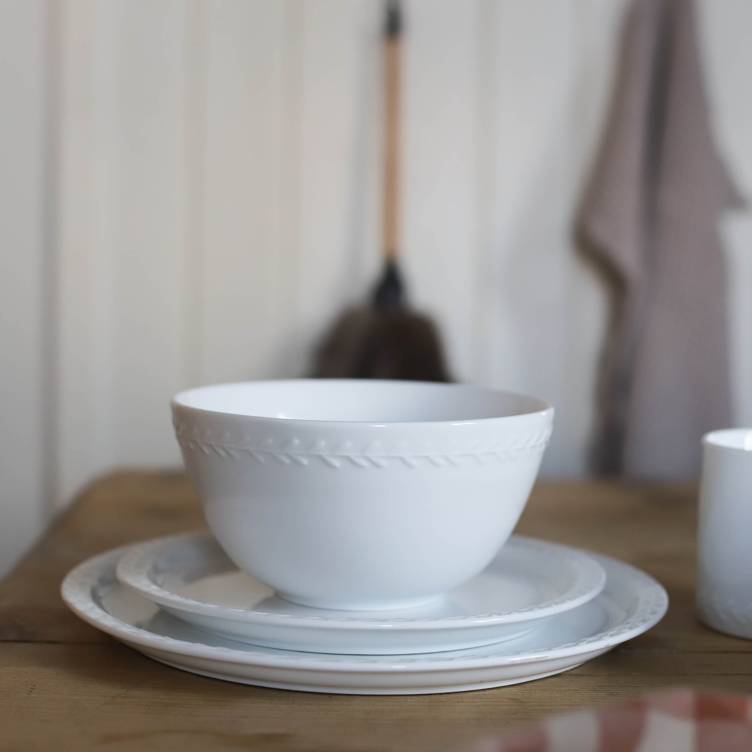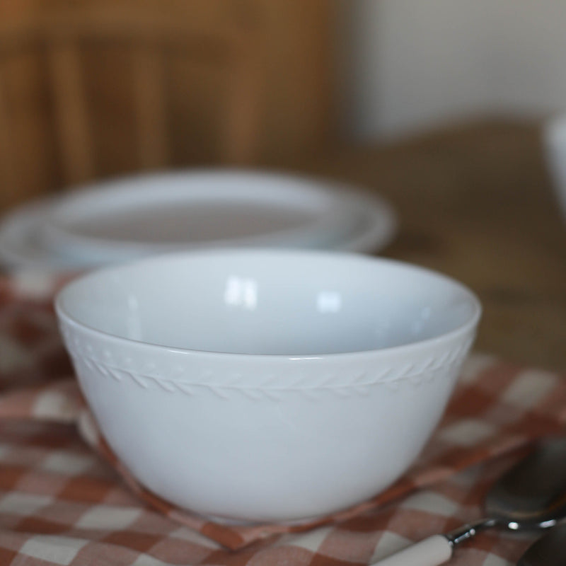 Pors bolle 21 cm i hvitt er en tidløs og allsidig del av PORS-serien. Den rene hvite overflaten fremhever de delikate relieffene av porsplanten langs kanten, noe som gir bollen et subtilt og elegant uttrykk. Perfekt til servering av salater, snacks eller desserter, og den hvite fargen gjør bollen enkel å kombinere med andre serviser. For en vakker borddekking kan den hvite bollen også mikses med den originale grønne versjonen i serien.