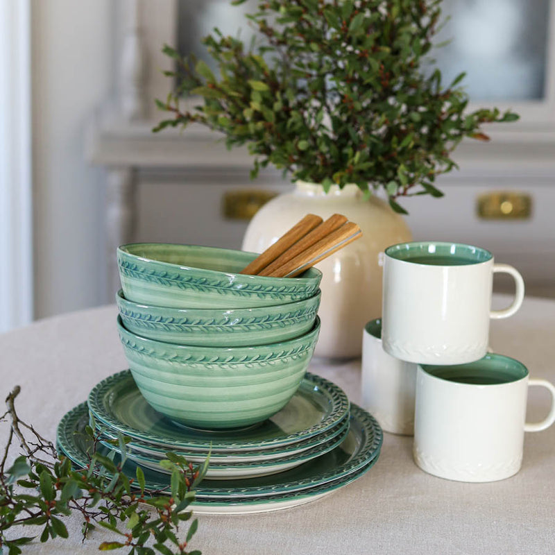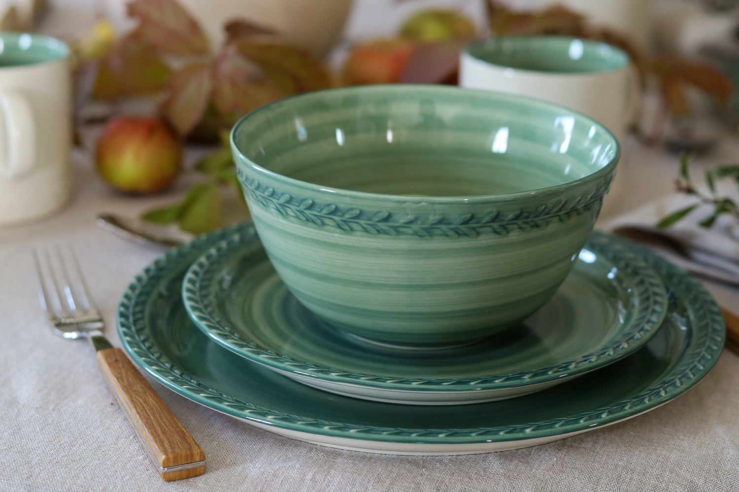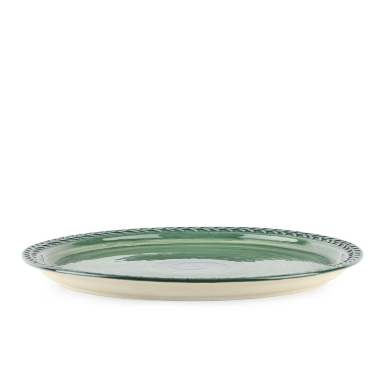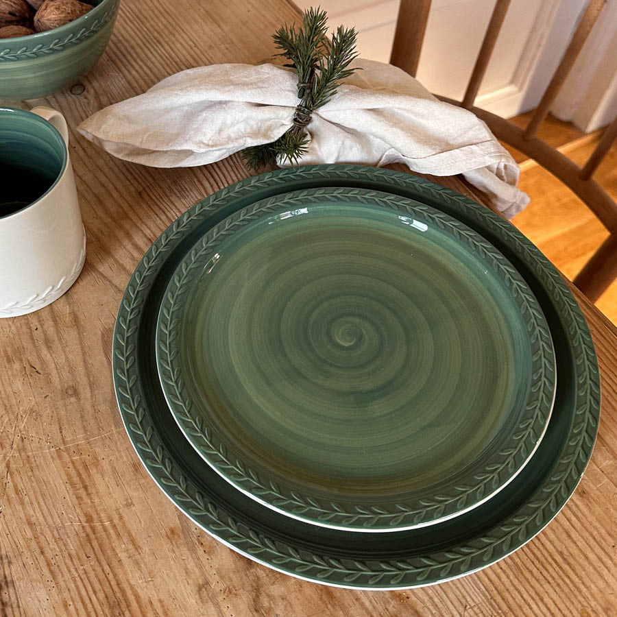 Den store Pors tallerkenen på 26 cm gir deg rom til å servere både hverdagens og festens måltider. Detaljene fra porsplanten, som er preget inn langs kantene, og den vakre grønnfargen skaper et harmonisk uttrykk. Tallerkenen passer perfekt sammen med andre deler av Pors-serviset eller kan kombineres med andre serviser for et unikt uttrykk.