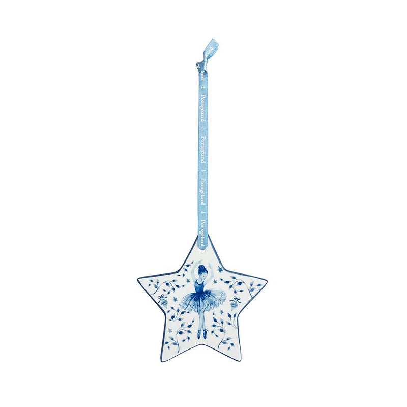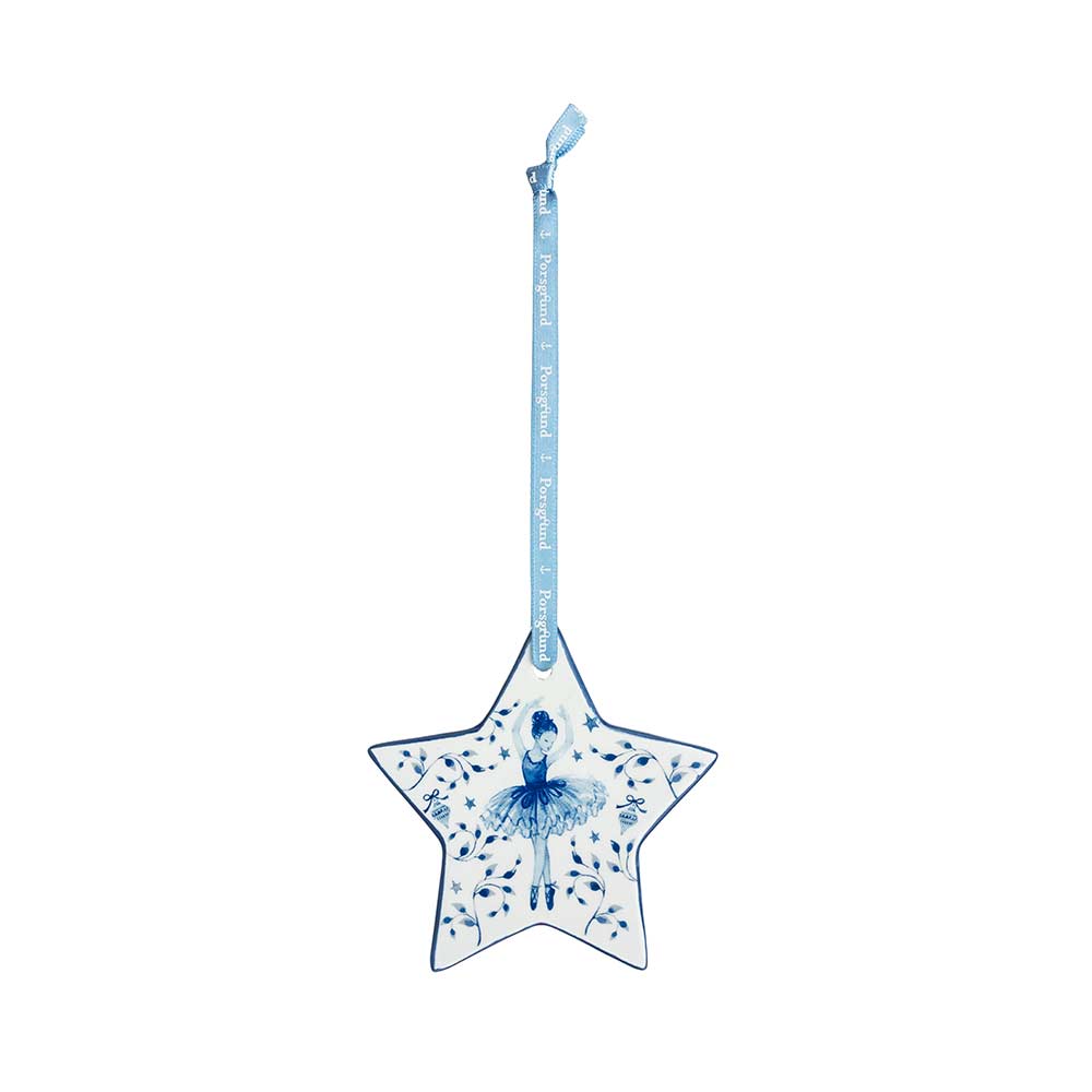 PORSELEN HENGEPYNT HJETE, TRE, STJERNE BLÅ BALLERINA3 PK. H 7,5 CM