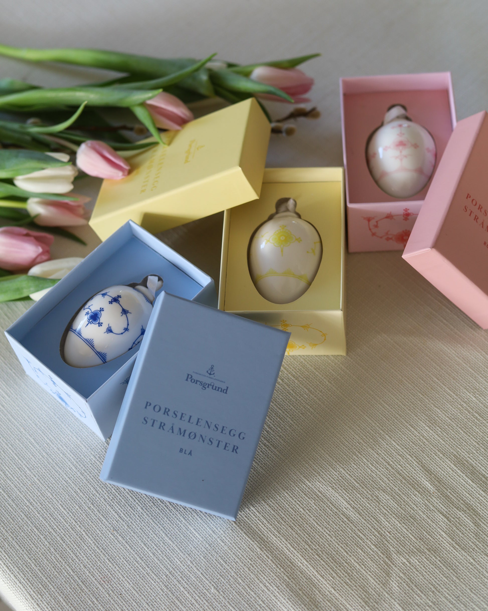 Sett med tre porselensegg i det ikoniske Stråmønsteret fra Porsgrund Porselænsfabrik – en tidløs dekorfavoritt for både vår- og påskefeiringen. Her får du ett egg i hver farge – rosa, gul og blå – perfekt for å skape en harmonisk og elegant påskepynt. De delikate eggene passer like godt på festbordet som i en dekorativ skål eller hengende på påskegrenen. Laget av høybrent porselen for varig kvalitet. En eksklusiv gave til samlere og designelskere.