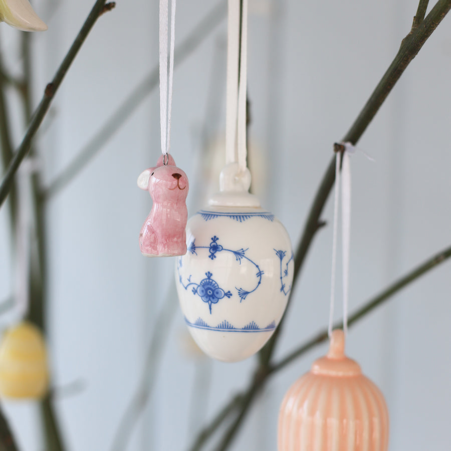 Egget finnes også i gult og rosa, og fargene passer fint sammen – perfekt for en variert og dekorativ påskepynt.