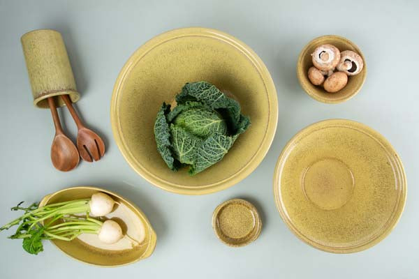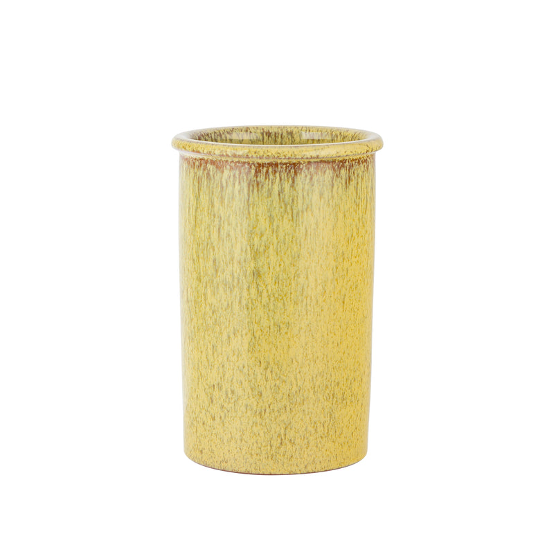 Hold orden på kjøkkenbenken med redskapskrukken i Terra-serien i fargen Ocre fra Porsgrunds Porselænsfabrik. Den varme, gyldne glasuren gir et naturlig og elegant uttrykk som passer inn i både moderne og klassiske kjøkken. Perfekt til sleiver, visper og andre kjøkkenredskaper. Laget i keramikk.