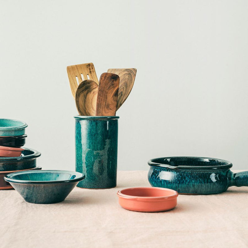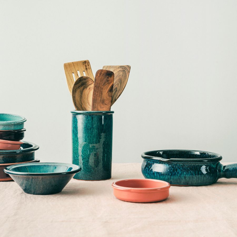 Denne redskapskrukken er et allsidig og praktisk tilbehør på kjøkkenet som kan brukes til å organisere og oppbevare en rekke kjøkkenredskaper. Bruk redskapskrukken til å holde kjøkkenredskaper som sleiver, visper, spiseskjeer, tanger, spatler og annet kjøkkenutstyr lett tilgjengelig på kjøkkenbenken. Denne nydelige sjøgrønne fargen heter Verde og vil passe perfekt til å organisering av bakeredskaper, oppbevare grillredskaper eller andre serveringsredskaper.