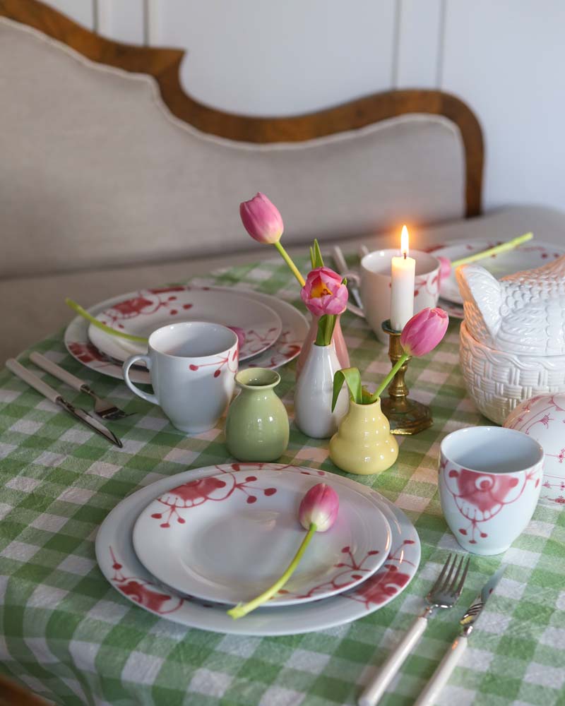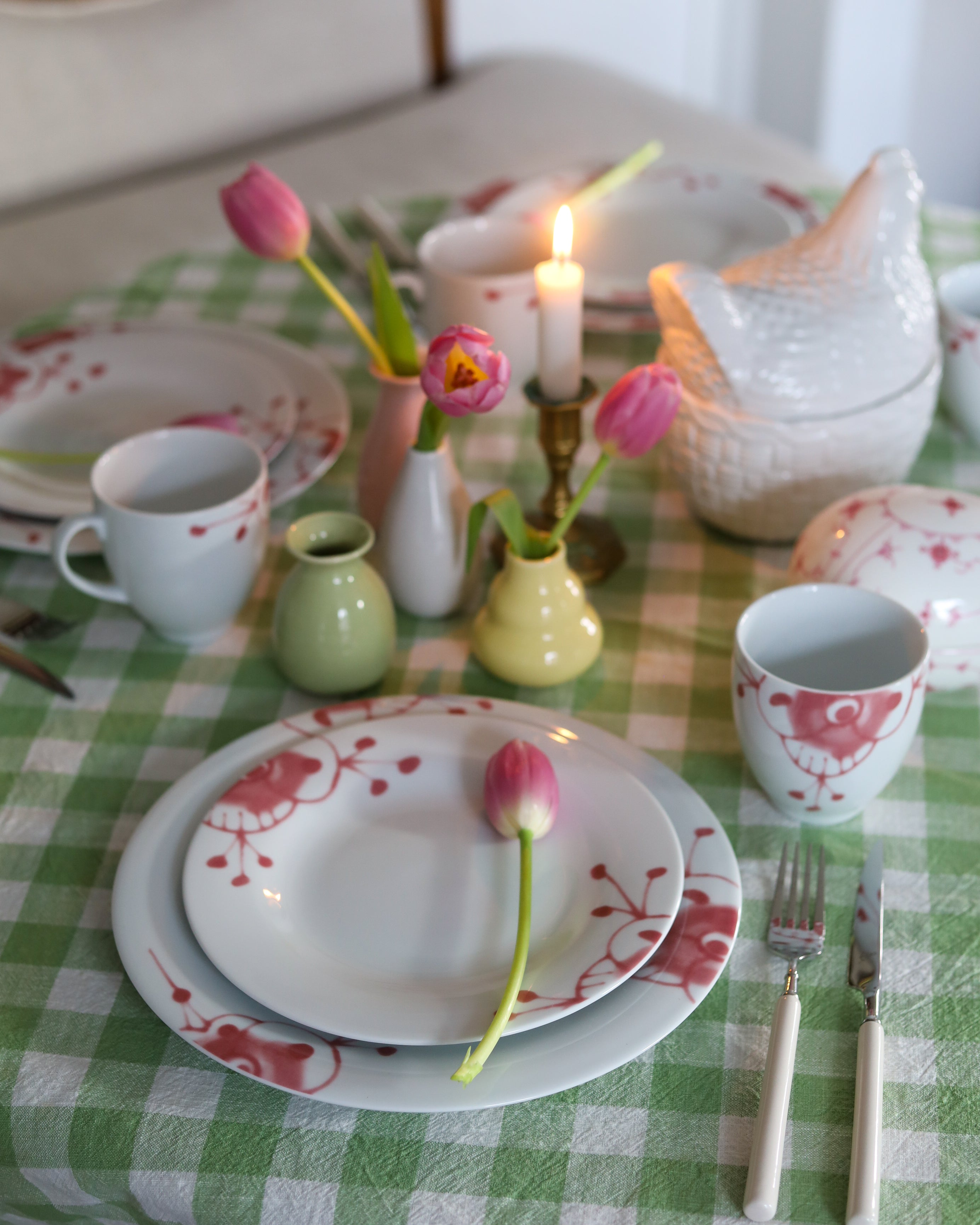 Maxistrå rosa fra Porsgrunds Porselænsfabrik er en moderne tolkning av et kjært og tradisjonsrikt mønster. Den karakteristiske strådekoren har fått et mykt, rosa uttrykk som gir serviset et lett og feminint preg – samtidig som det ivaretar det tidløse formspråket.