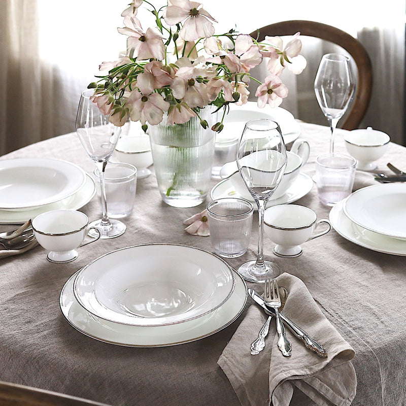 Nathalie er et vakkert og stilrent benporselensservise som passer inn i de fleste interiørstiler. Det har et rent uttrykk, dekorert med en elegant «kjærlighetslenke» i platina. Serviset passer perfekt sammen med serviset Cecilie, dersom du øsnker mer dekor på enkelte deler. Serviset er designet for store anledninger og passer derfor utmerket til merkedager og hyggelige fester. Nathalie er designet av Porsgrunds designteam og lansert i 2004. Benporselen er kremhvitt og mer gjennomskinnelig enn høybrent feltspatporselen og 100% tett. Produktseriene produseres hos utvalgte fabrikker som er kjent for å holde høy standard på produksjon av benporselen.