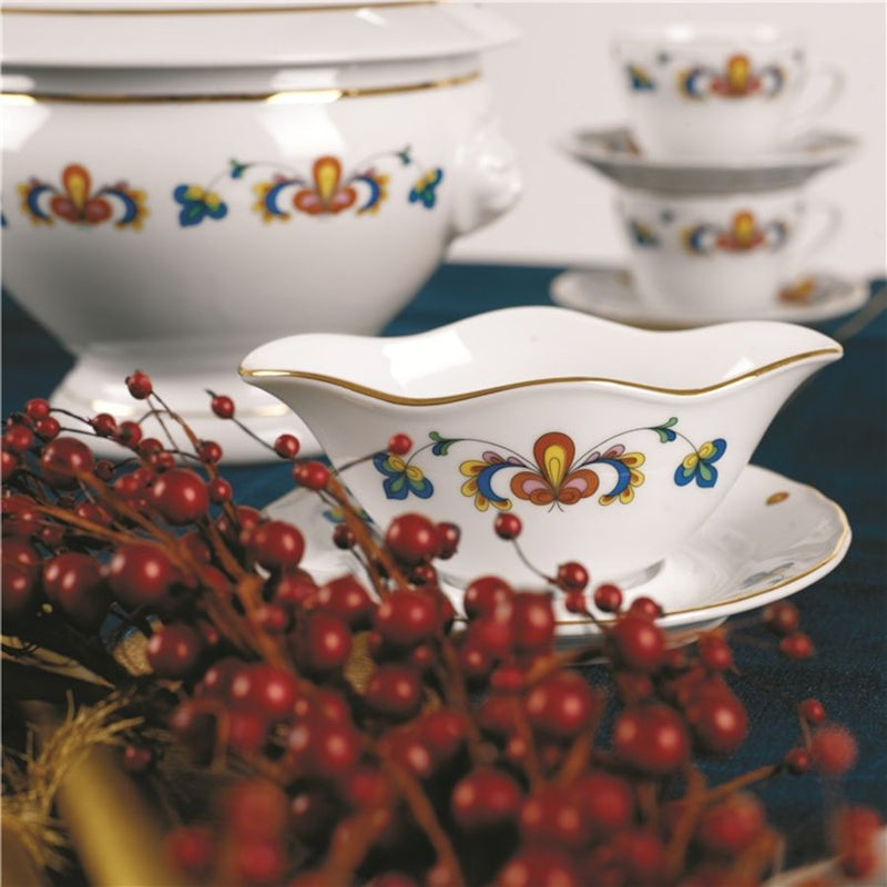 Oppvaskmaskin: Serviser med overglasurdekorer, spesielt gull og platina, er mer utsatt for slitasje og vi anbefaler derfor oppvask for hånd. Generelt anbefaler vi skånsom vask og bruk av glansemiddel, da opprettholdes glasurens glans og du forlenger servisets levetid. ikrobølgeovn: Artikler med gull eller platinadekor må ikke brukes i mikrobølgeovn. Ovn: Vi anbefaler ikke at du setter porselensartikler med gull eller platinadekor i ovnen.