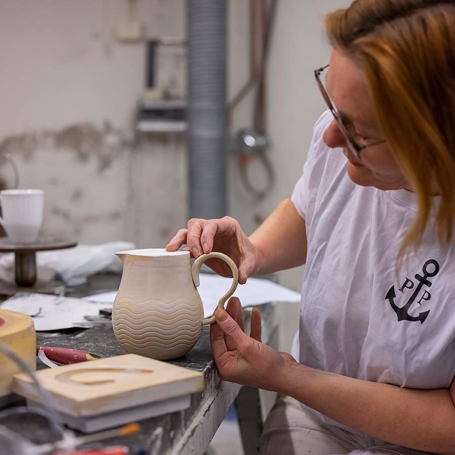 Bølge Strå er et unikt servise som kombinerer funksjon og estetikk med norskproduserte kvalitetsprodukter. Serviset er utviklet i tråd med Porsgrunds Porselænsfabriks tradisjonsrike arv og har et moderne uttrykk som vil vare inn i fremtiden. Det stilrene bølge-relieffet symboliserer historien om hvordan porselenet kom over havet til Norge da Porsgrund startet som porselensprodusent for 140 år siden. Produsert i Porsgrunn og et helnorsk produkt, er Bølge Strå et servise laget for å vare i generasjoner.