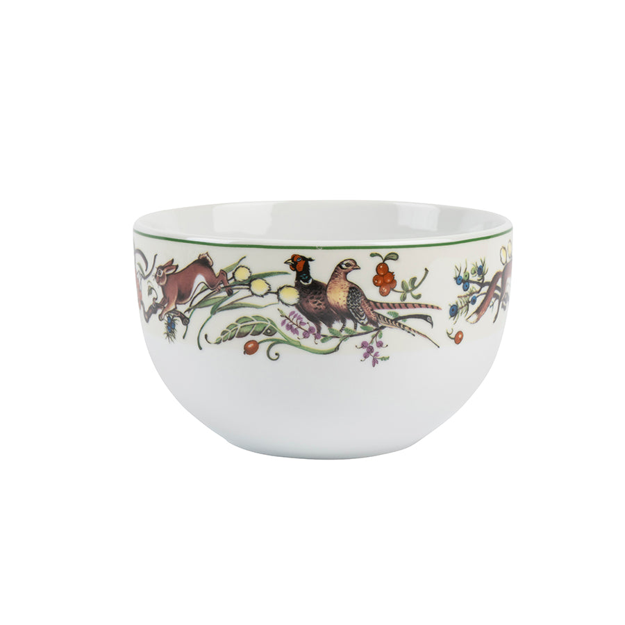 Faunamønsteret ble unnfanget da illustratør Astrid Reppe var på tur i den norske villmarka. Den norske faunaen med sin ville, uberørte, natur ble til et flott og robust design der både rev, hare og rype finnes mellom einebær og andre ville planter. Serviset ble lansert i 1998 Har du hytte på fjellet eller driver du med jakt? Fauna er det perfekte serviset når gode viltretter serveres! Høybrent feltspatporselen er den porselenskvaliteten Porsgrunds Porselænsfabrik har produsert siden 1887, altså fra begynnelsen. Det høybrent porselenet regnes som den edleste kvaliteten av porselen og kjennetegnes ved at det er gjennomskinnelig hvitt med en klar glansfull glasur. Høybrent porselen består kun av rene naturmaterialer, er 100% tett, svært robust og er velegnet til både fest, og hverdagsbruk.